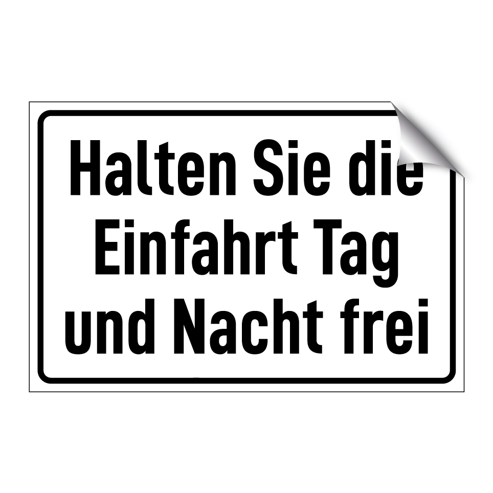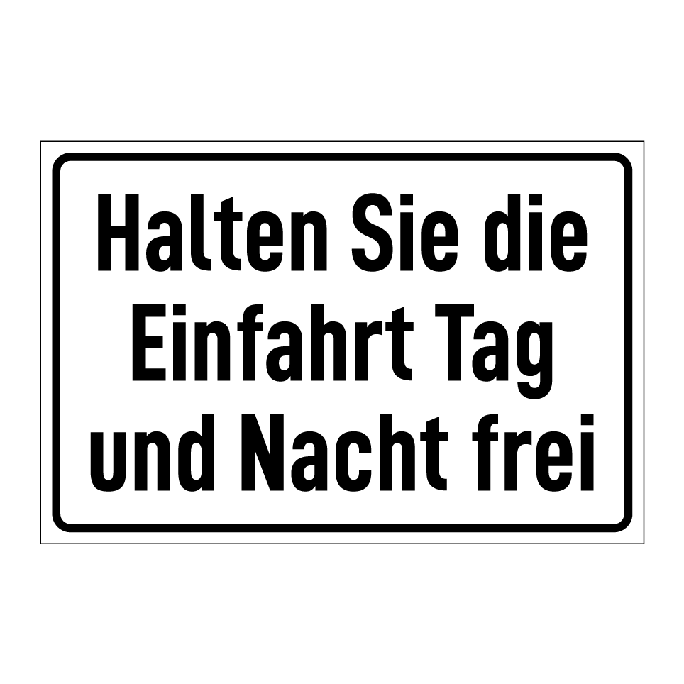 Parkverbotsschild mit dem Text Halten Sie die Einfahrt Tag und Nacht frei