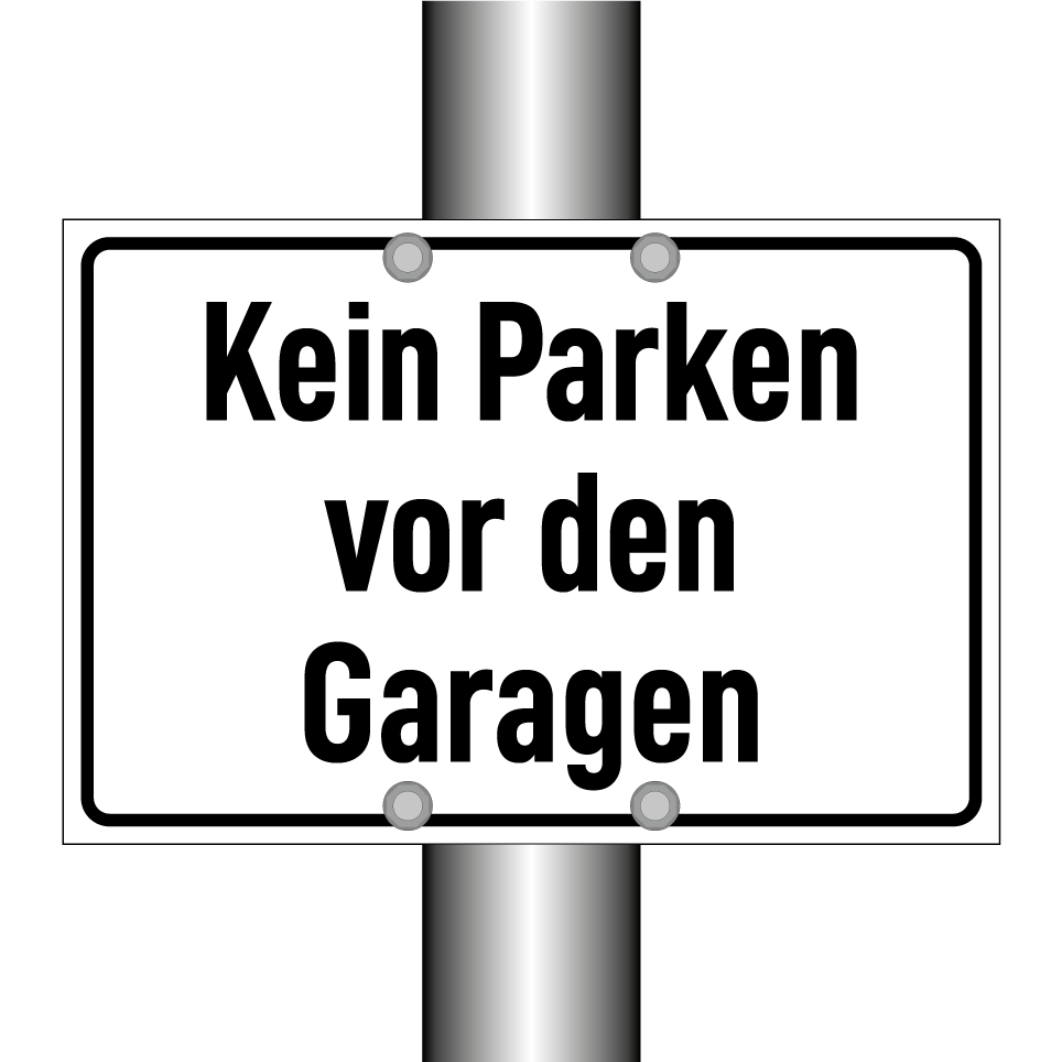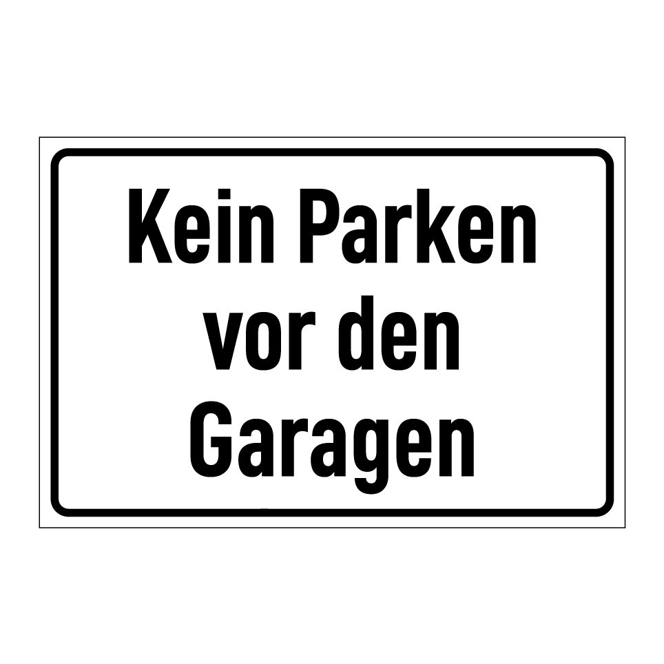 Parkverbotsschild mit dem Text Kein Parken vor den Garagen