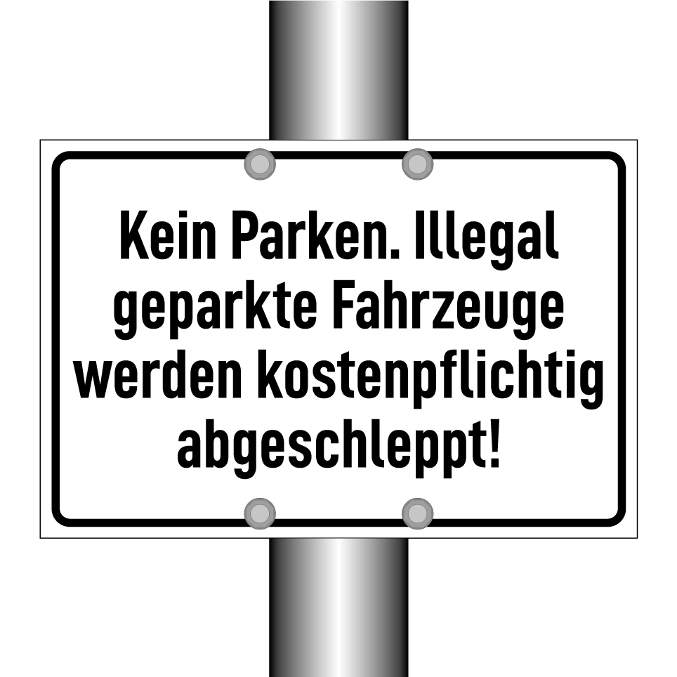 Parkverbotsschild mit dem Text Kein Parken. Illegal geparkte Fahrzeuge werden kostenpflichtig abgeschleppt!