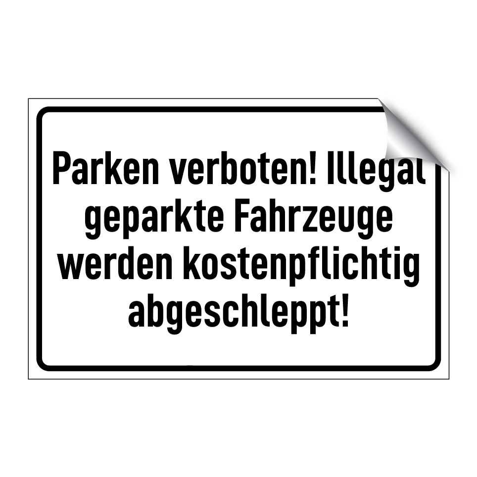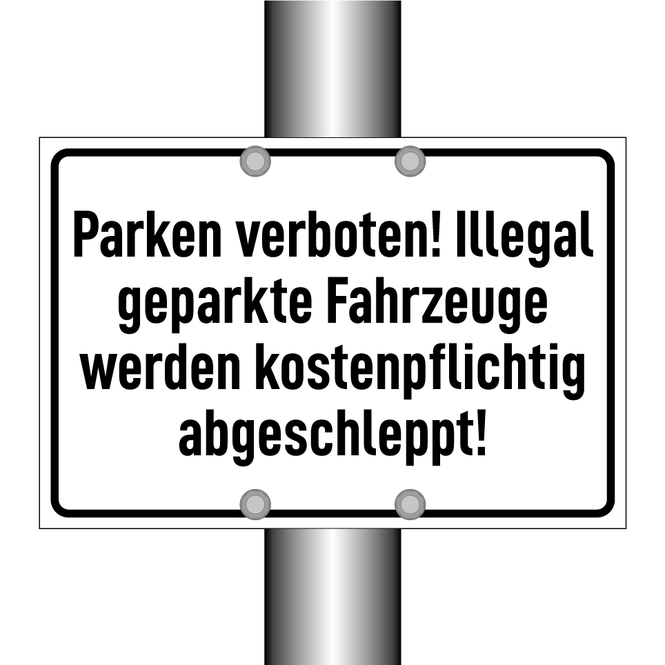 Parkverbotsschild mit dem Text Parken verboten! Illegal geparkte Fahrzeuge werden kostenpflichtig abgeschleppt!