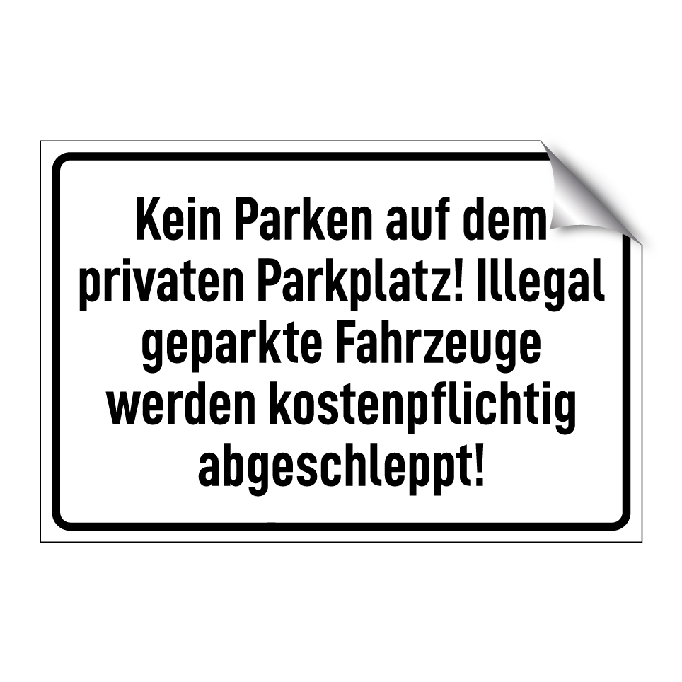 Diese Hinweistafel eignet sich ideal für private Parkplätze, um unbefugtes Parken zu verhindern. Sie kann an Einfahrten, Garagen oder privaten Stellplätzen angebracht werden, um klarzustellen, dass das Parken hier nicht gestattet ist. Die deutliche Botschaft warnt davor, dass widerrechtlich abgestellte Fahrzeuge kostenpflichtig abgeschleppt werden. Diese Tafel ist besonders nützlich für Eigentümer, die sicherstellen möchten, dass ihre Parkflächen frei von unbefugten Fahrzeugen bleiben.