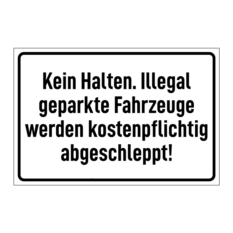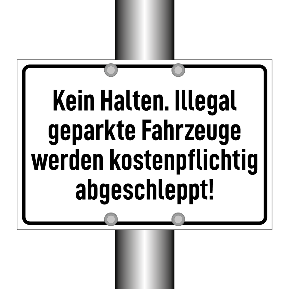 Parkverbotsschild mit dem Text Kein Halten. Illegal geparkte Fahrzeuge werden kostenpflichtig abgeschleppt!