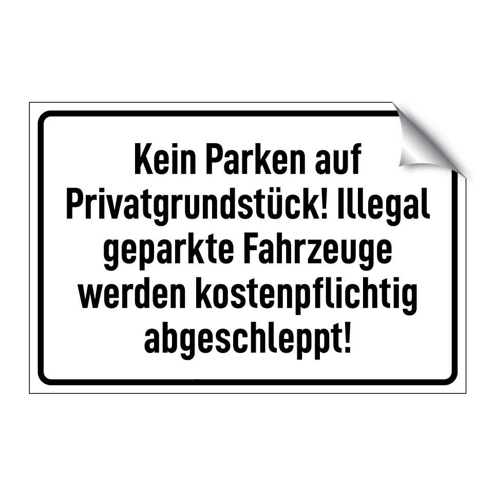 Diese Hinweistafel eignet sich ideal für private Grundstücke, um unbefugtes Parken zu verhindern. Sie kann an Einfahrten, Garagen oder privaten Parkplätzen angebracht werden, um klarzustellen, dass das Abstellen von Fahrzeugen ohne Erlaubnis nicht gestattet ist. Die Tafel dient als deutliche Warnung, dass widerrechtlich abgestellte Fahrzeuge kostenpflichtig abgeschleppt werden. Perfekt für Eigentümer, die ihre Parkflächen schützen und unbefugtes Parken effektiv unterbinden möchten.