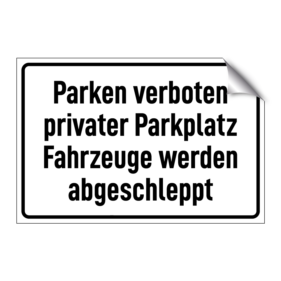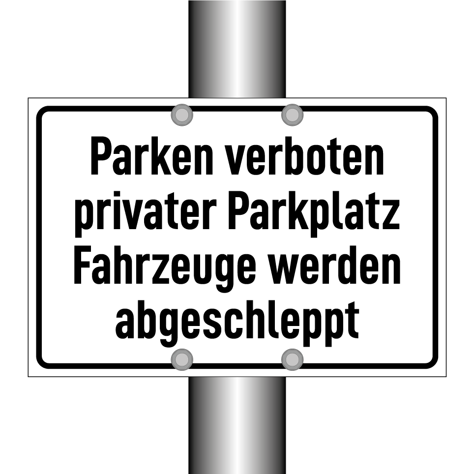 Parkschild mit dem Text Parken verboten privater Parkplatz Fahrzeuge werden abgeschleppt