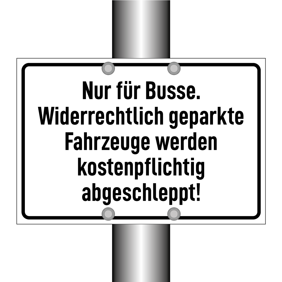 Parkschild mit dem Text Nur für Busse. Widerrechtlich geparkte Fahrzeuge werden kostenpflichtig abgeschleppt!