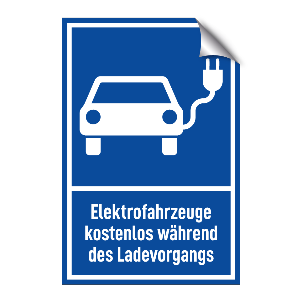 Parkschild mit dem Text Elektrofahrzeuge kostenlos während des Ladevorgangs