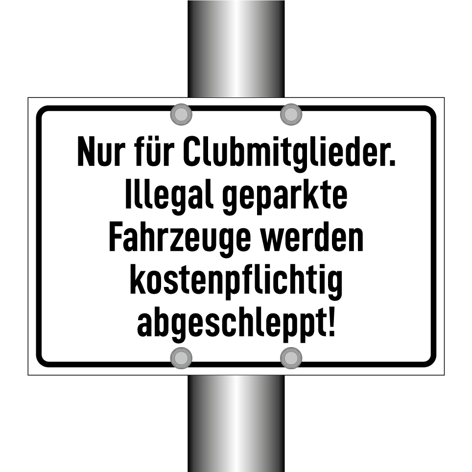 Parkschild mit dem Text Nur für Clubmitglieder. Illegal geparkte Fahrzeuge werden kostenpflichtig abgeschleppt!