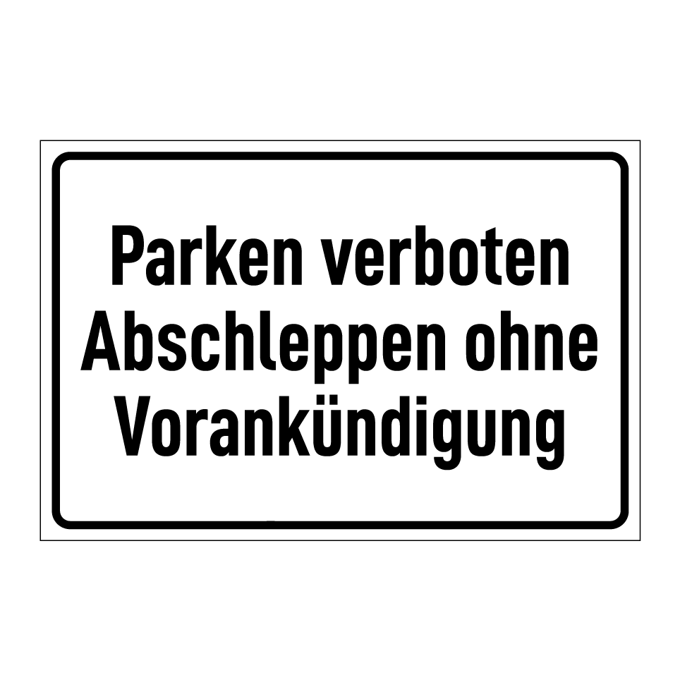 Parkverbotsschild mit dem Text Parken verboten Abschleppen ohne Vorankündigung