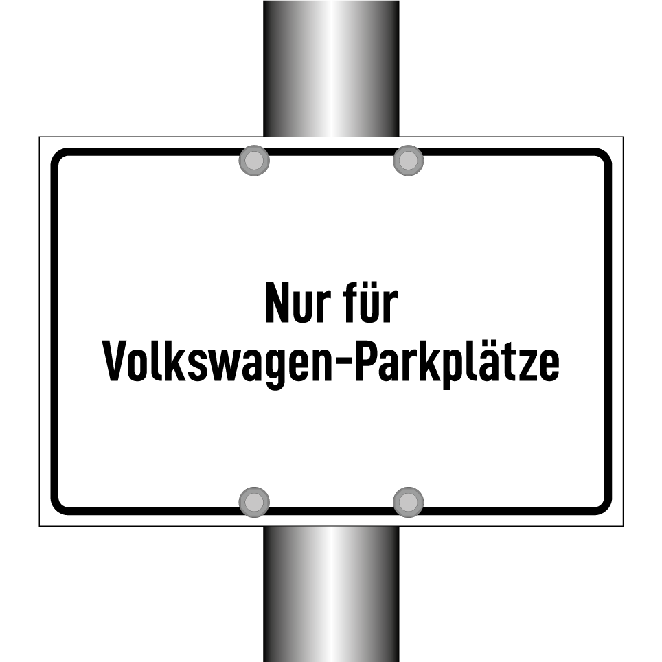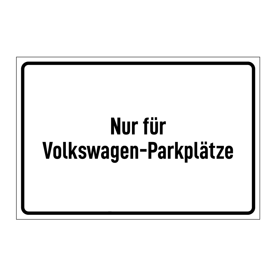 Diese Parkplatzbeschilderung ist ideal für Volkswagen-Händler, Werkstätten oder private Parkplätze, die exklusiv für Volkswagen-Fahrzeuge reserviert sind. Sie kann an Einfahrten, Wänden oder Zäunen angebracht werden, um klar anzuzeigen, dass der Bereich nur für Volkswagen bestimmt ist. Diese Beschilderung sorgt für Ordnung und vermeidet Missverständnisse, indem sie deutlich macht, dass nur bestimmte Fahrzeuge hier parken dürfen. Perfekt für die Organisation von Parkflächen und zur Vermeidung von unbefugtem Parken.