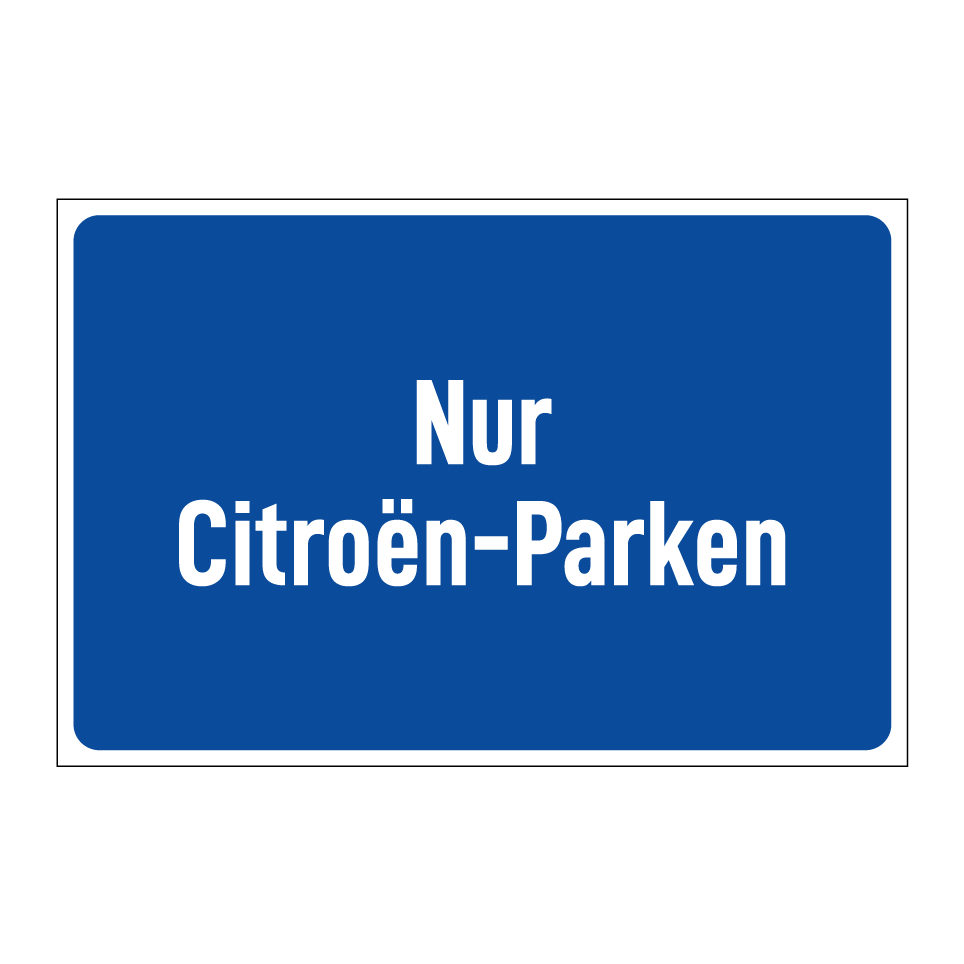 Diese exklusive Parkbeschilderung ist ideal für Citroën-Fahrzeuge und sorgt für klare Parkanweisungen. Perfekt geeignet für private Parkplätze, Garagen oder Firmengelände, um sicherzustellen, dass nur Citroën-Fahrzeuge parken. Die auffällige blaue Hintergrundfarbe mit weißem Rahmen und Text sorgt für hohe Sichtbarkeit und klare Kommunikation. Platzieren Sie dieses Schild an Einfahrten, Parkplätzen oder anderen relevanten Bereichen, um eine geordnete und markenspezifische Parkumgebung zu schaffen.