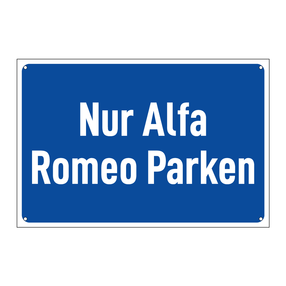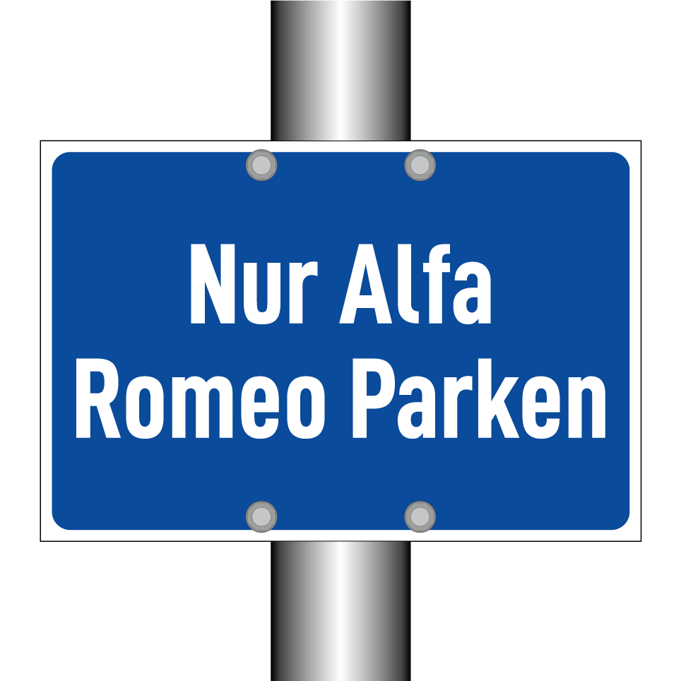 Parkschild mit dem Text Nur Alfa Romeo Parken
