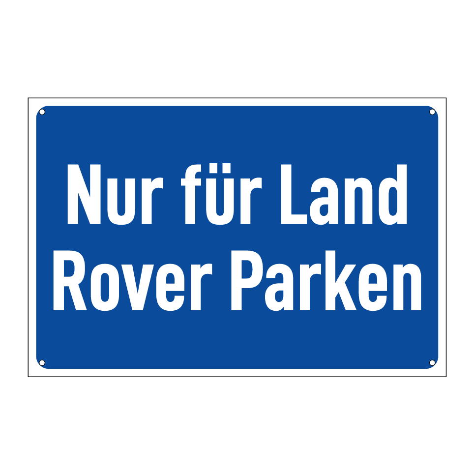 Diese exklusive Parkbeschilderung ist ideal für private Parkplätze, Garagen oder Firmengelände, die speziell für Land Rover Fahrzeuge reserviert sind. Sie signalisiert deutlich, dass der Parkplatz nur für Land Rover Fahrer zugänglich ist und hilft, unbefugtes Parken zu verhindern. Die auffällige blaue Hintergrundfarbe mit weißem Rahmen und Text sorgt für klare Sichtbarkeit und vermittelt eine klare Botschaft. Perfekt für Autohäuser, Werkstätten oder private Grundstücke, um den exklusiven Charakter des Parkplatzes zu unterstreichen.