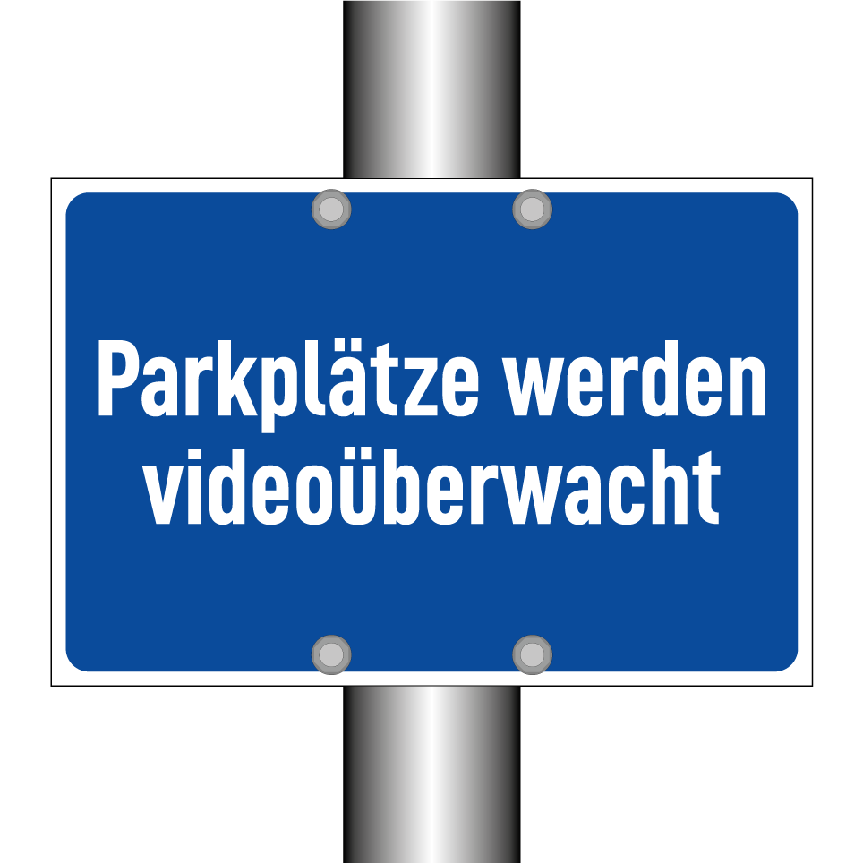 Parkschild mit dem Text Parkplätze werden videoüberwacht