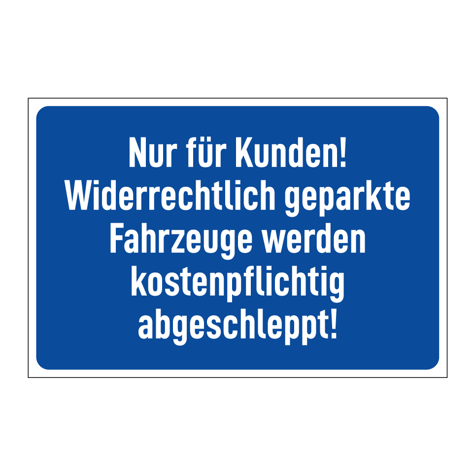 Parkschild mit dem Text Nur für Kunden! Widerrechtlich geparkte Fahrzeuge werden kostenpflichtig abgeschleppt!