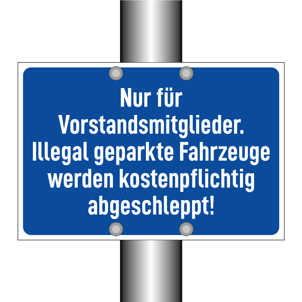 Parkschild mit dem Text Nur für Vorstandsmitglieder. Illegal geparkte Fahrzeuge werden kostenpflichtig abgeschleppt!