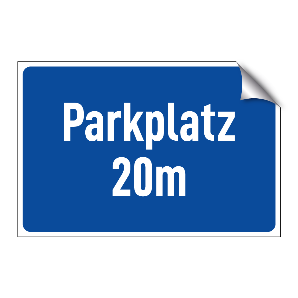 Parkschild mit dem Text Parkplatz 20m