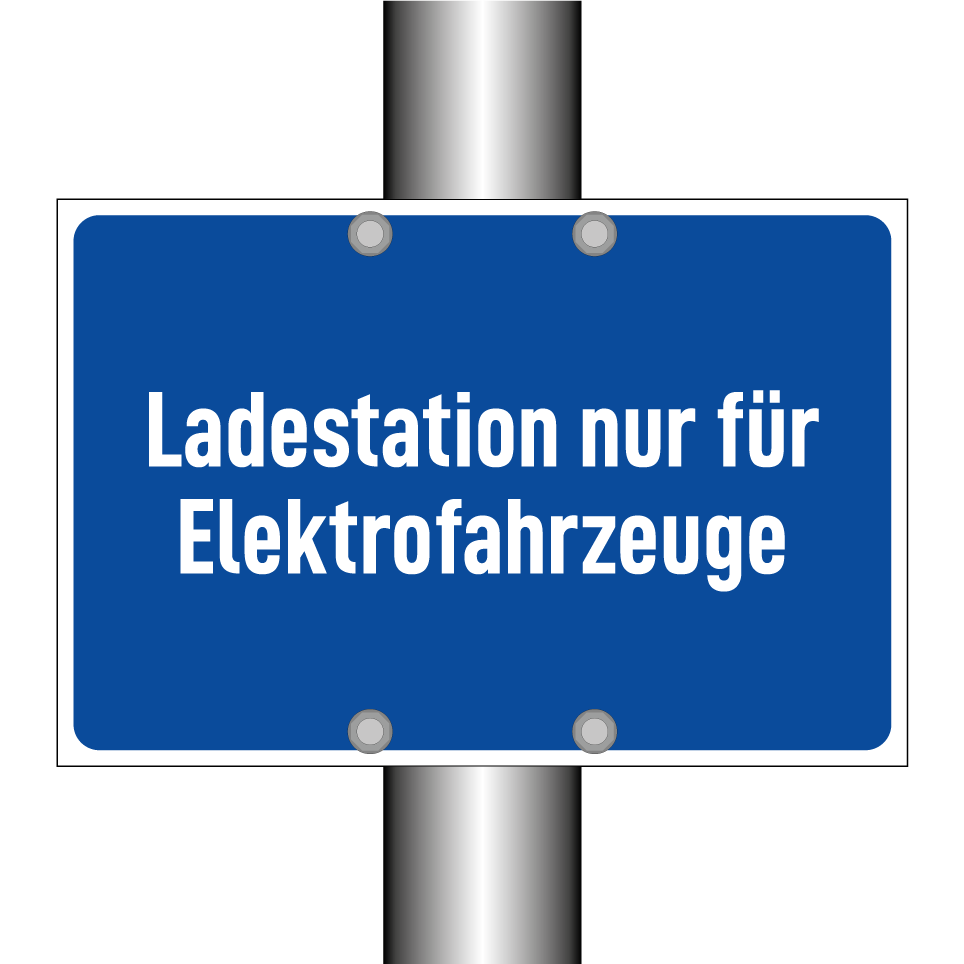Parkschild mit dem Text Ladestation nur für Elektrofahrzeuge