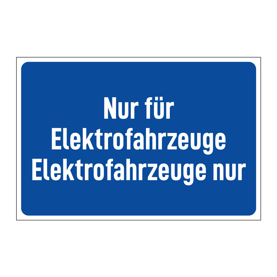 Diese Parkbeschilderung ist ideal für Bereiche, die speziell für Elektrofahrzeuge reserviert sind. Sie kann in Parkhäusern, auf Firmenparkplätzen oder in öffentlichen Parkzonen angebracht werden, um klar zu signalisieren, dass der Parkplatz ausschließlich für Elektroautos vorgesehen ist. Die deutliche blaue Hintergrundfarbe mit weißem Rahmen und Text sorgt für hohe Sichtbarkeit und klare Kommunikation. Diese Beschilderung trägt dazu bei, die Nutzung von Elektrofahrzeugen zu fördern und sicherzustellen, dass die entsprechenden Parkplätze frei bleiben.
