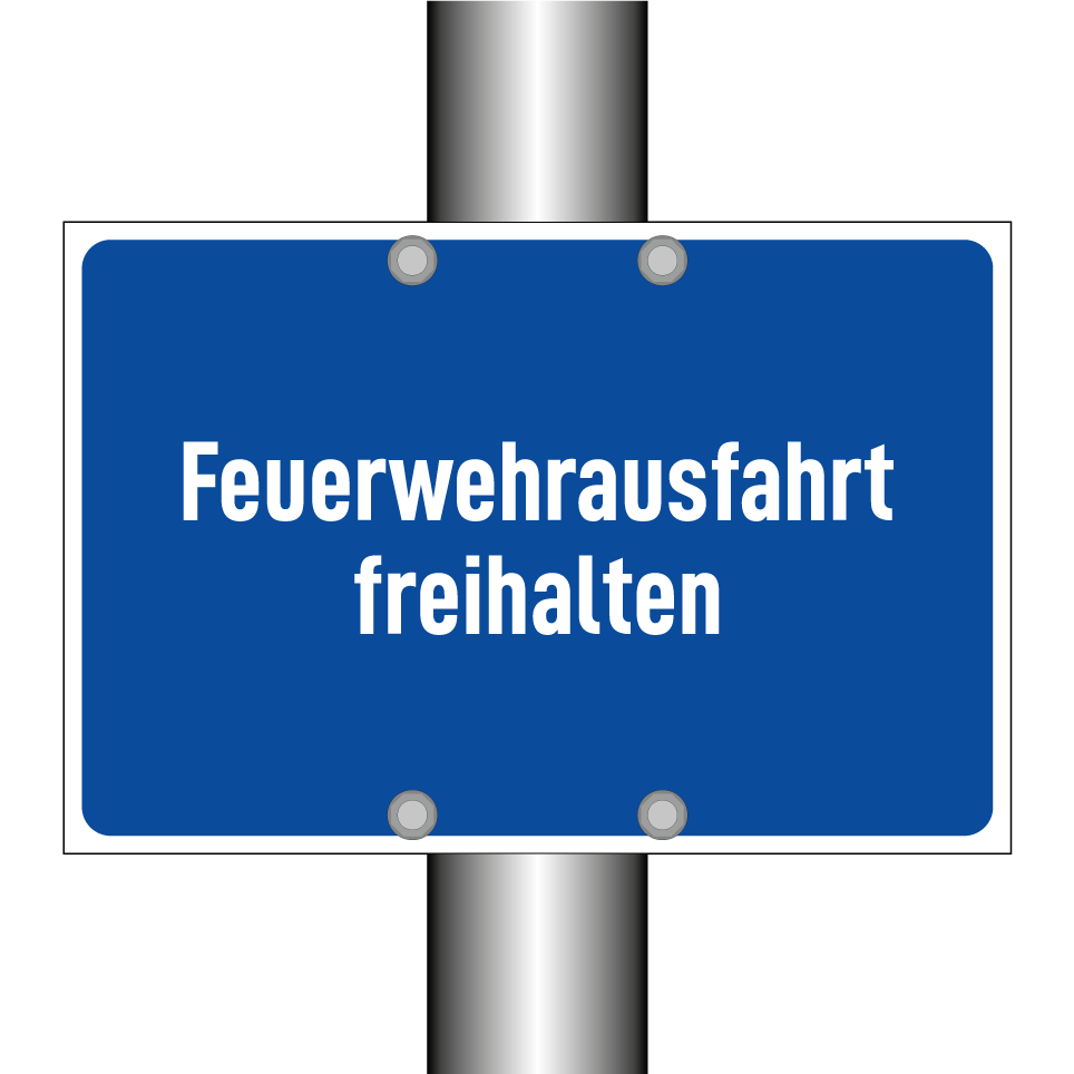 Parkverbotsschild mit dem Text Feuerwehrausfahrt freihalten