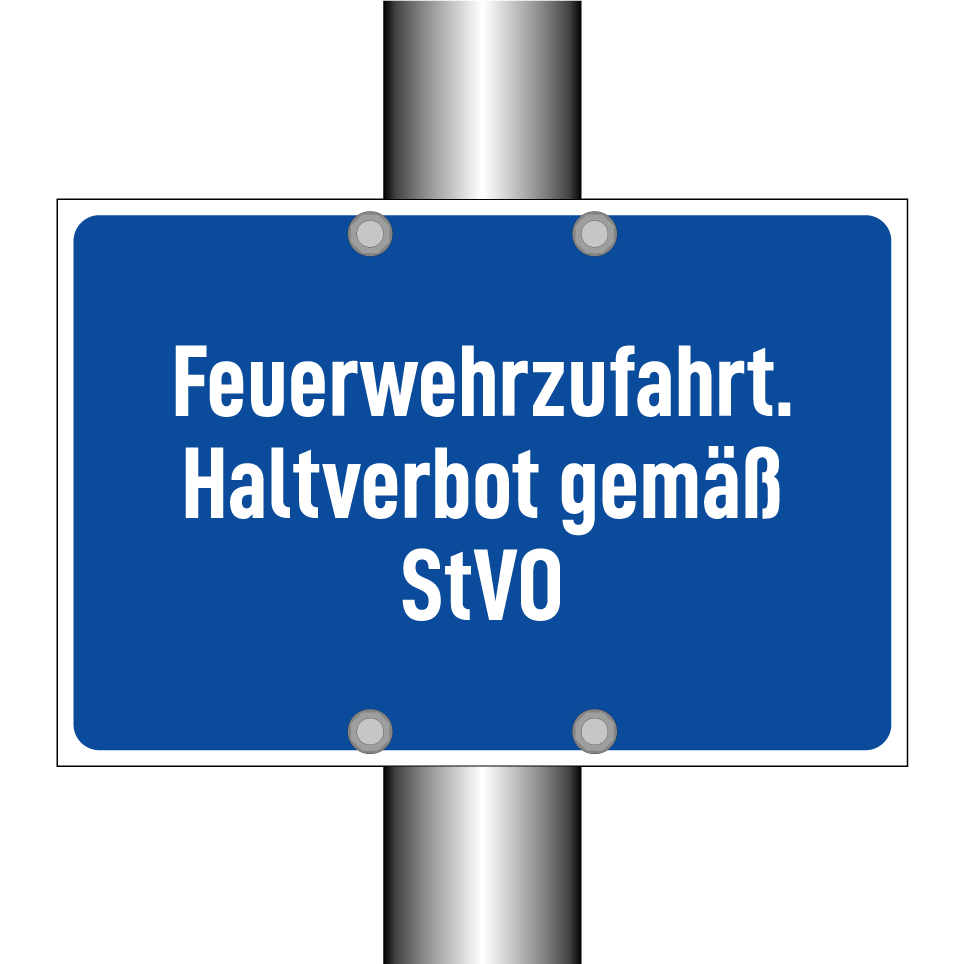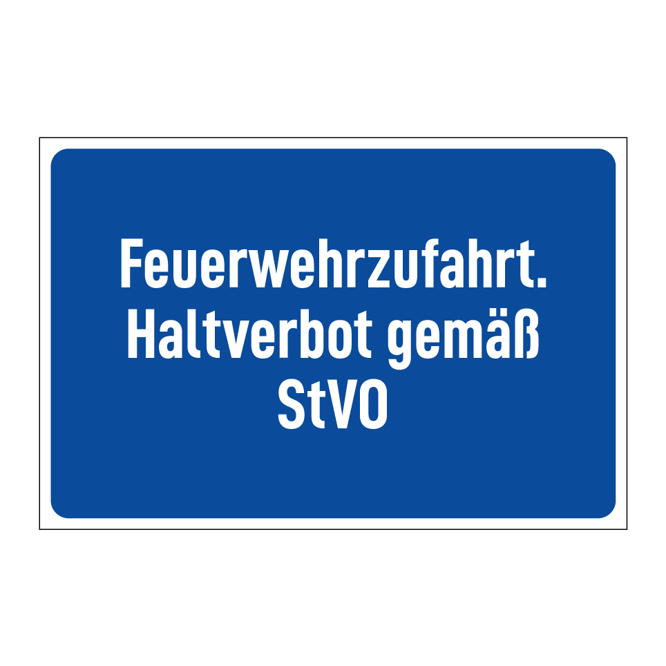 Diese Verbotstafel ist ideal für die Kennzeichnung von Feuerwehrzufahrten, um sicherzustellen, dass diese jederzeit frei zugänglich bleiben. Sie dient dazu, unbefugtes Parken zu verhindern und die Einhaltung der Straßenverkehrsordnung zu gewährleisten. Die Tafel kann an Einfahrten, Zufahrtswegen oder anderen kritischen Bereichen angebracht werden, wo das Parken untersagt ist. Durch ihre auffällige Gestaltung mit blauem Hintergrund und weißer Schrift ist sie leicht erkennbar und vermittelt klar das Parkverbot.
