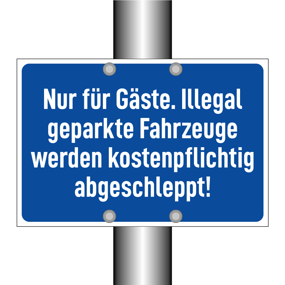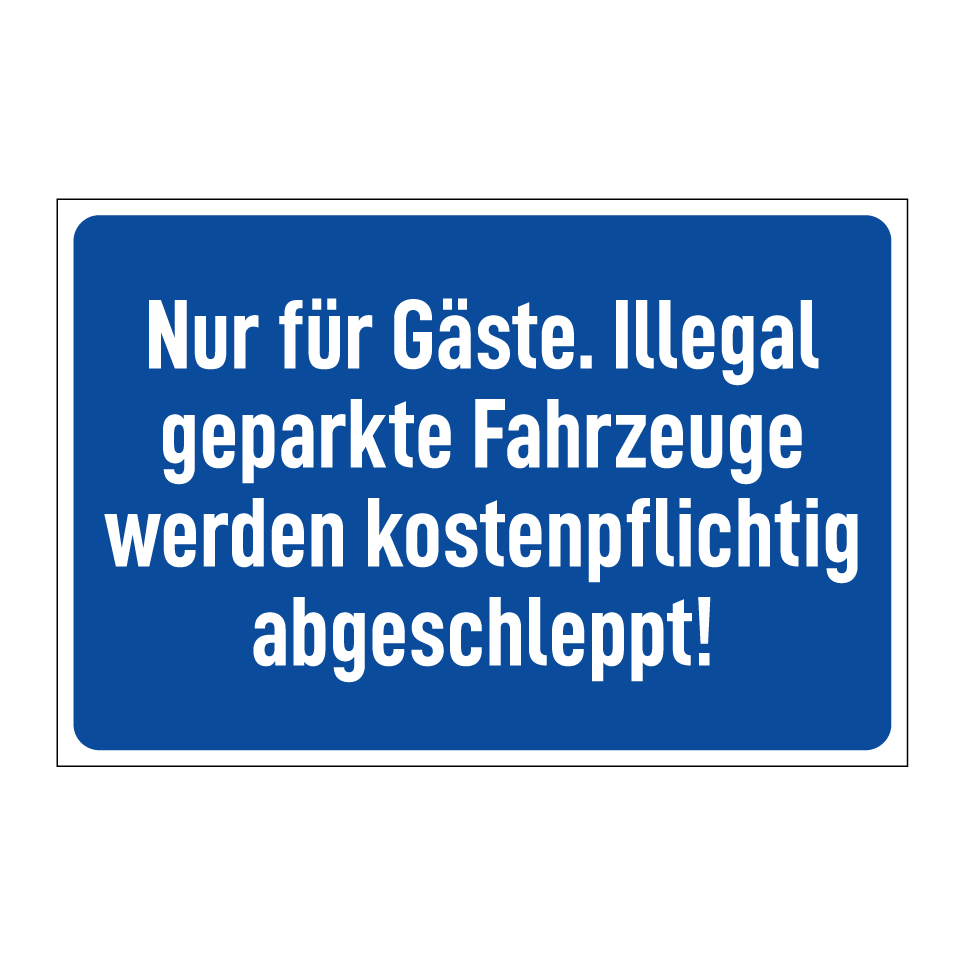 Parkschild mit dem Text Nur für Gäste. Illegal geparkte Fahrzeuge werden kostenpflichtig abgeschleppt!