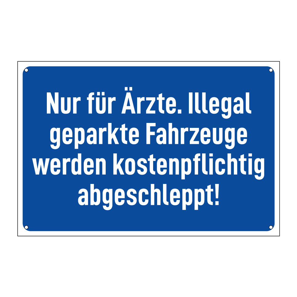 Parkschild mit dem Text Nur für Ärzte. Illegal geparkte Fahrzeuge werden kostenpflichtig abgeschleppt!