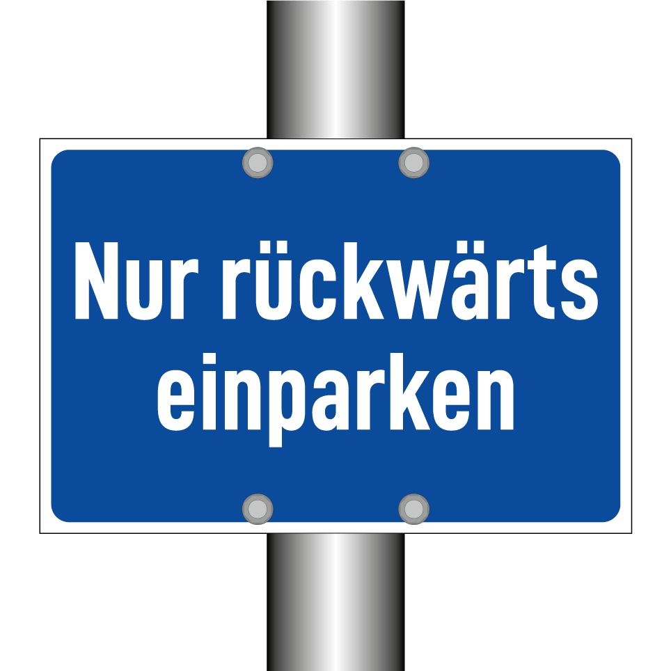 Diese Parkhinweistafel ist ideal für Parkplätze, bei denen das Rückwärtseinparken erforderlich ist. Sie eignet sich hervorragend für private Parkflächen, Tiefgaragen oder öffentliche Parkplätze, um den Verkehrsfluss zu optimieren und Unfälle zu vermeiden. Die klare Botschaft sorgt dafür, dass Fahrer die Anweisung leicht verstehen und befolgen können. Platzieren Sie diese Tafel an gut sichtbaren Stellen, um sicherzustellen, dass alle Verkehrsteilnehmer die Parkvorgaben beachten.