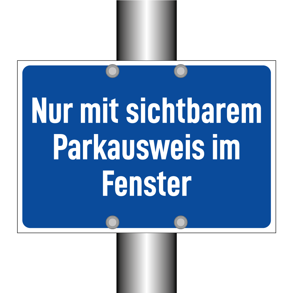 Parkschild mit dem Text Nur mit sichtbarem Parkausweis im Fenster
