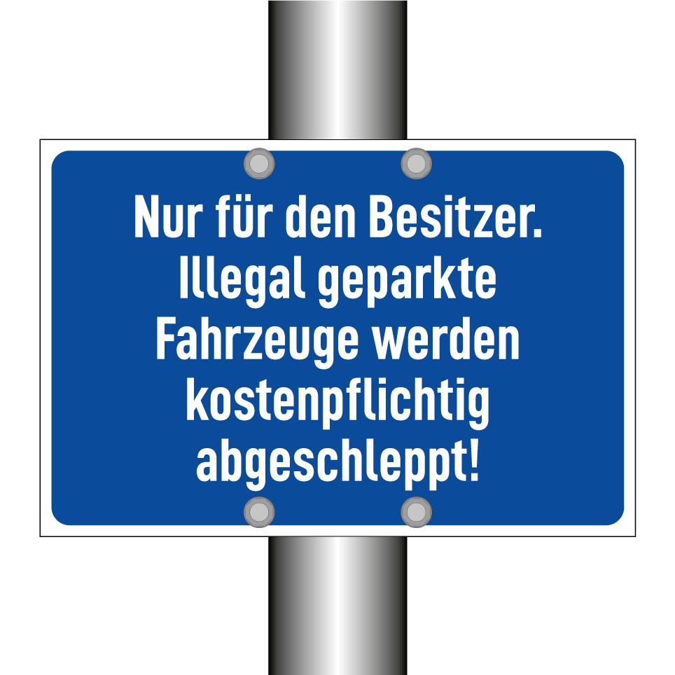 Parkschild mit dem Text Nur für den Besitzer. Illegal geparkte Fahrzeuge werden kostenpflichtig abgeschleppt!