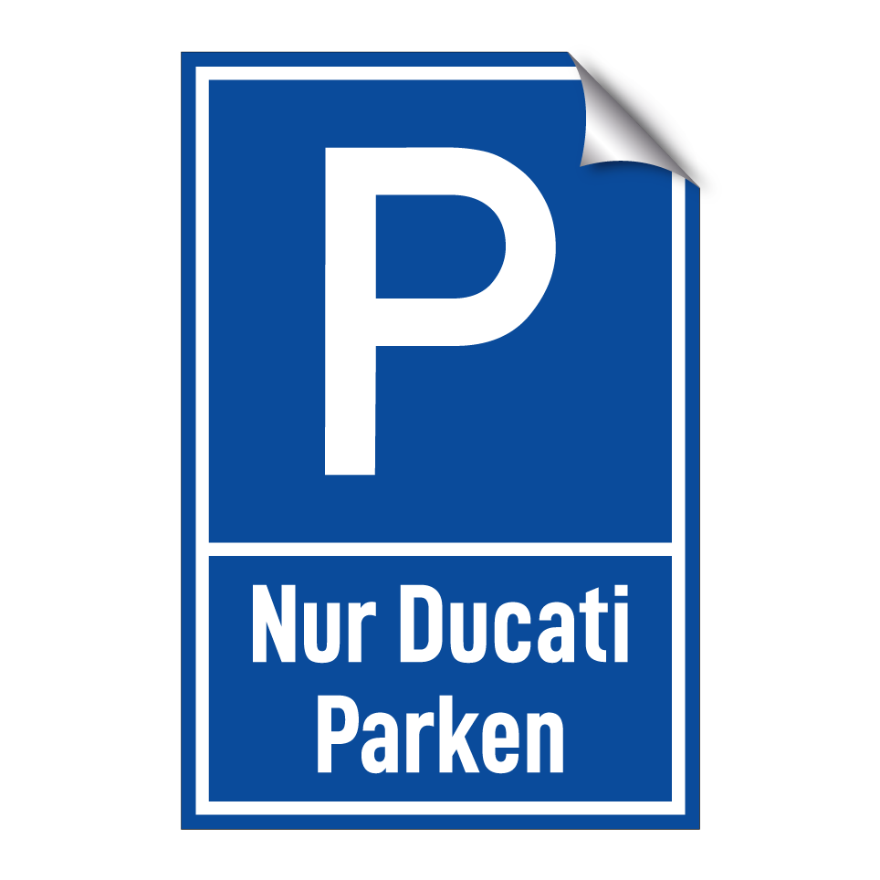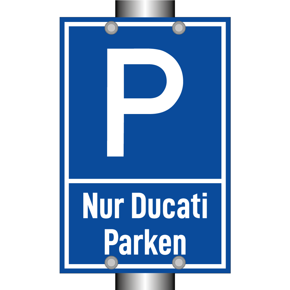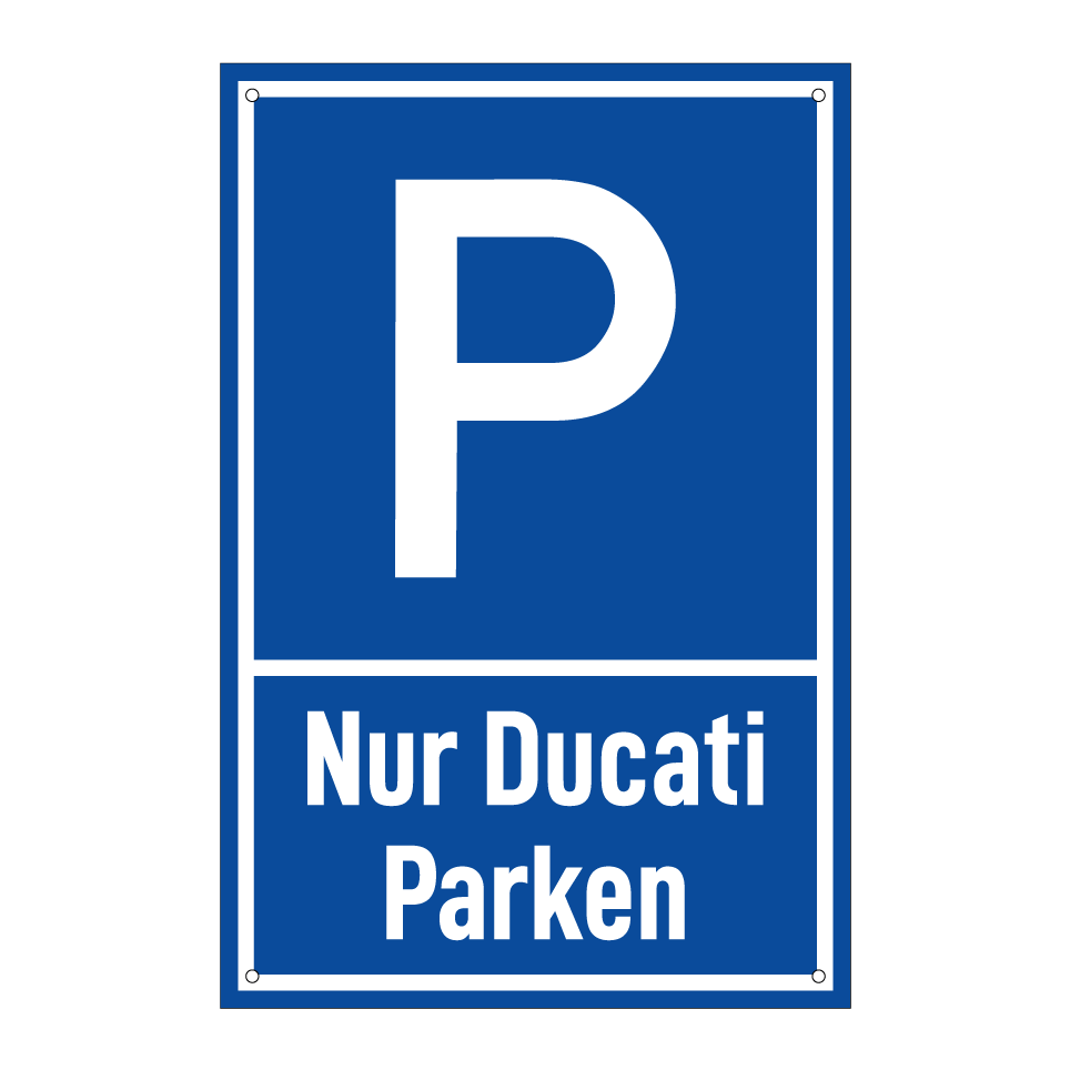 Diese exklusive Parkplatzbeschilderung ist ideal für Ducati-Liebhaber und kann in Garagen, privaten Parkplätzen oder Motorradclubs verwendet werden. Sie signalisiert klar und deutlich, dass der Bereich ausschließlich für Ducati-Fahrzeuge reserviert ist. Die robuste Konstruktion und das wetterfeste Material machen sie perfekt für den Außenbereich. Mit ihrer auffälligen blauen Hintergrundfarbe und dem kontrastreichen weißen Text zieht sie sofort die Aufmerksamkeit auf sich und sorgt für klare Parkanweisungen. Ein Muss für jeden Ducati-Enthusiasten, der seinen Parkplatz personalisieren möchte.