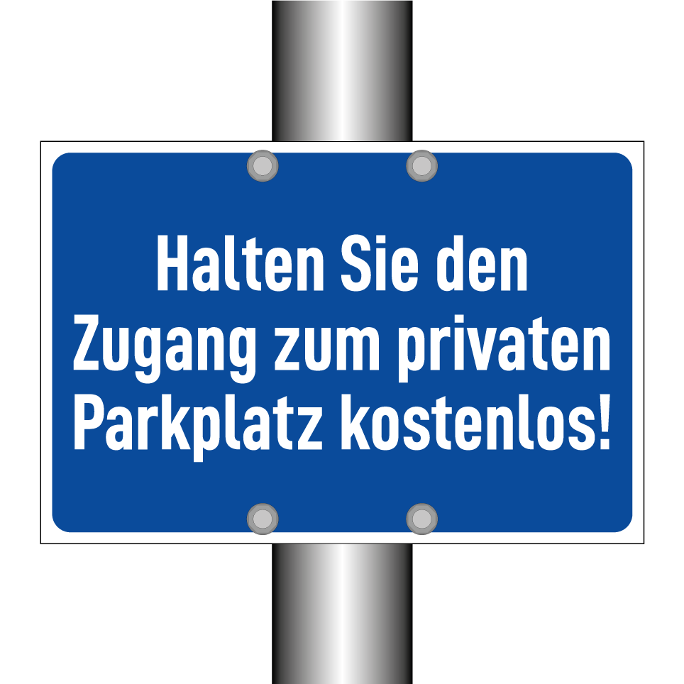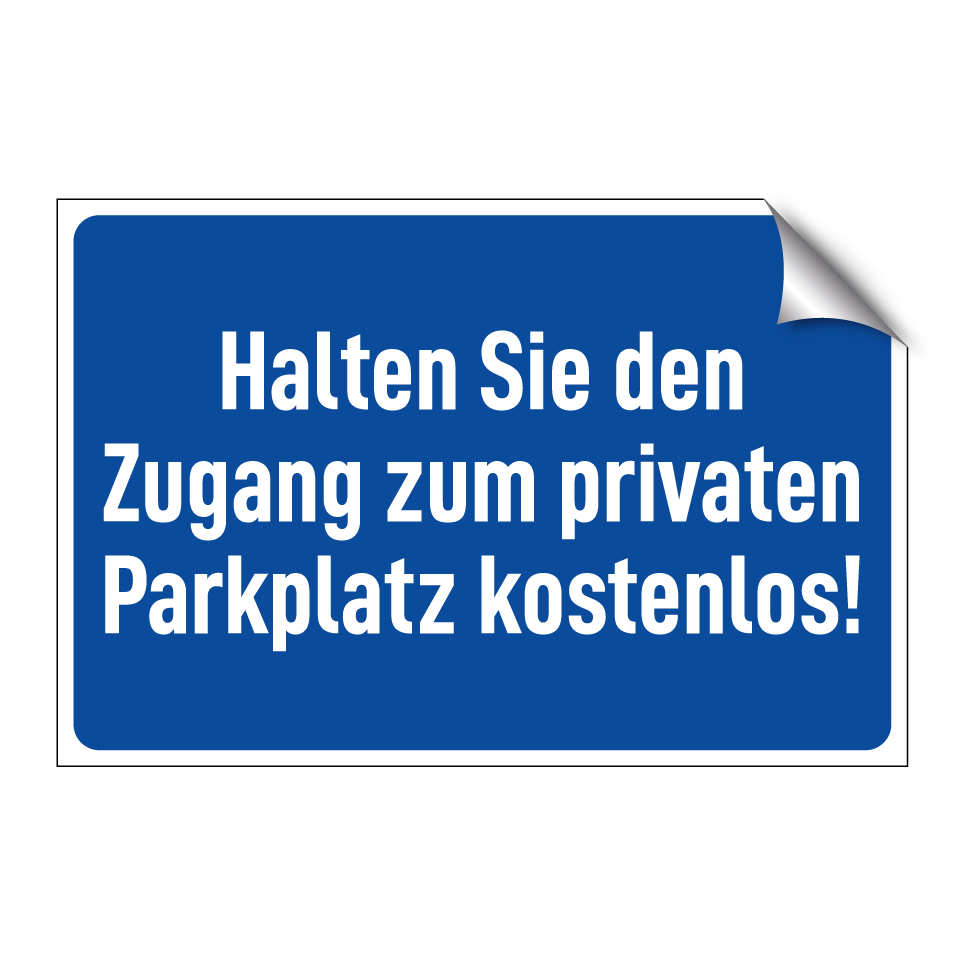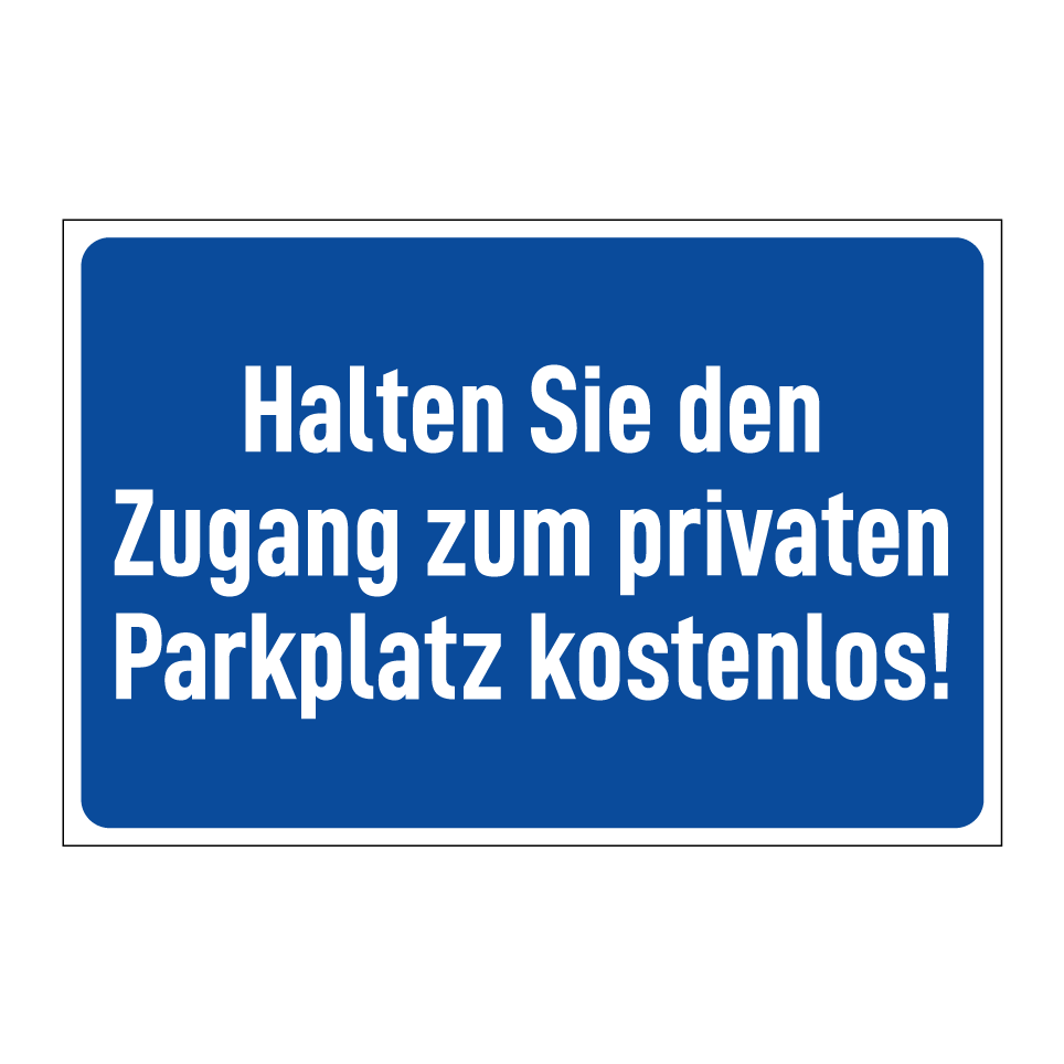 Parkverbotsschild mit dem Text Halten Sie den Zugang zum privaten Parkplatz kostenlos!