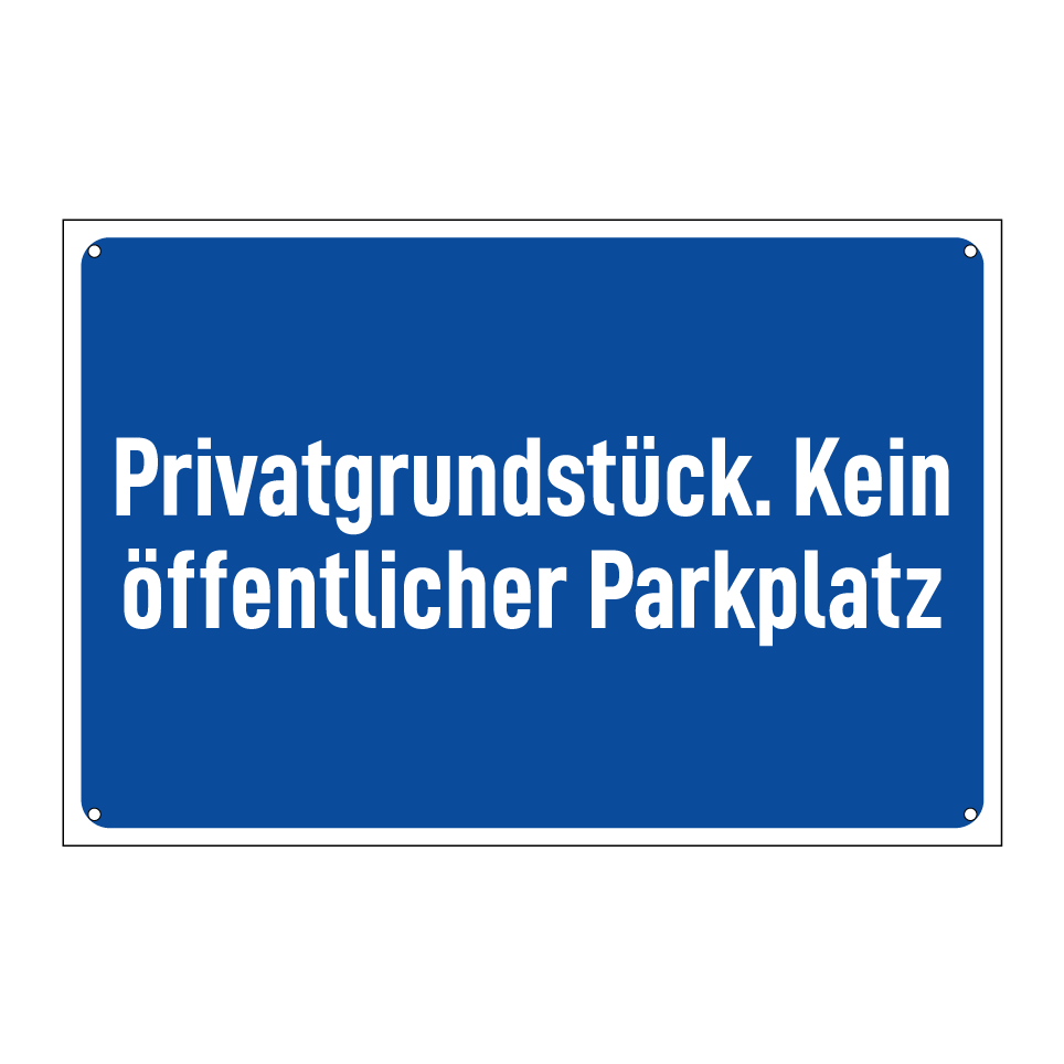 Diese Hinweistafel eignet sich ideal für private Grundstücke, um unbefugtes Parken zu verhindern. Sie kann an Einfahrten, Garagen oder privaten Parkplätzen angebracht werden, um klarzustellen, dass es sich um keinen öffentlichen Parkplatz handelt. Die deutliche blaue Hintergrundfarbe und der weiße Text sorgen für hohe Sichtbarkeit und klare Kommunikation. Diese Tafel ist perfekt, um Eigentum zu schützen und unerwünschte Fahrzeuge fernzuhalten. Ideal für Wohngebiete, Firmengelände oder andere private Bereiche.