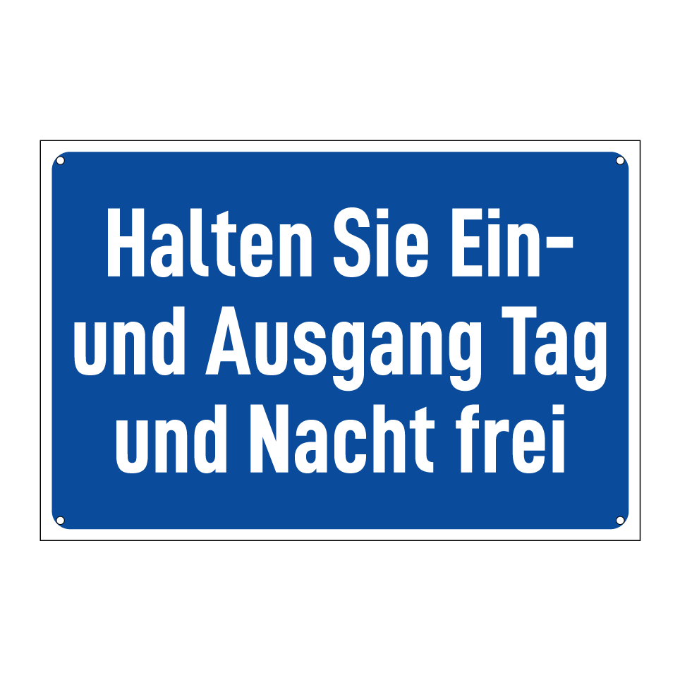 Parkverbotsschild mit dem Text Halten Sie Ein- und Ausgang Tag und Nacht frei