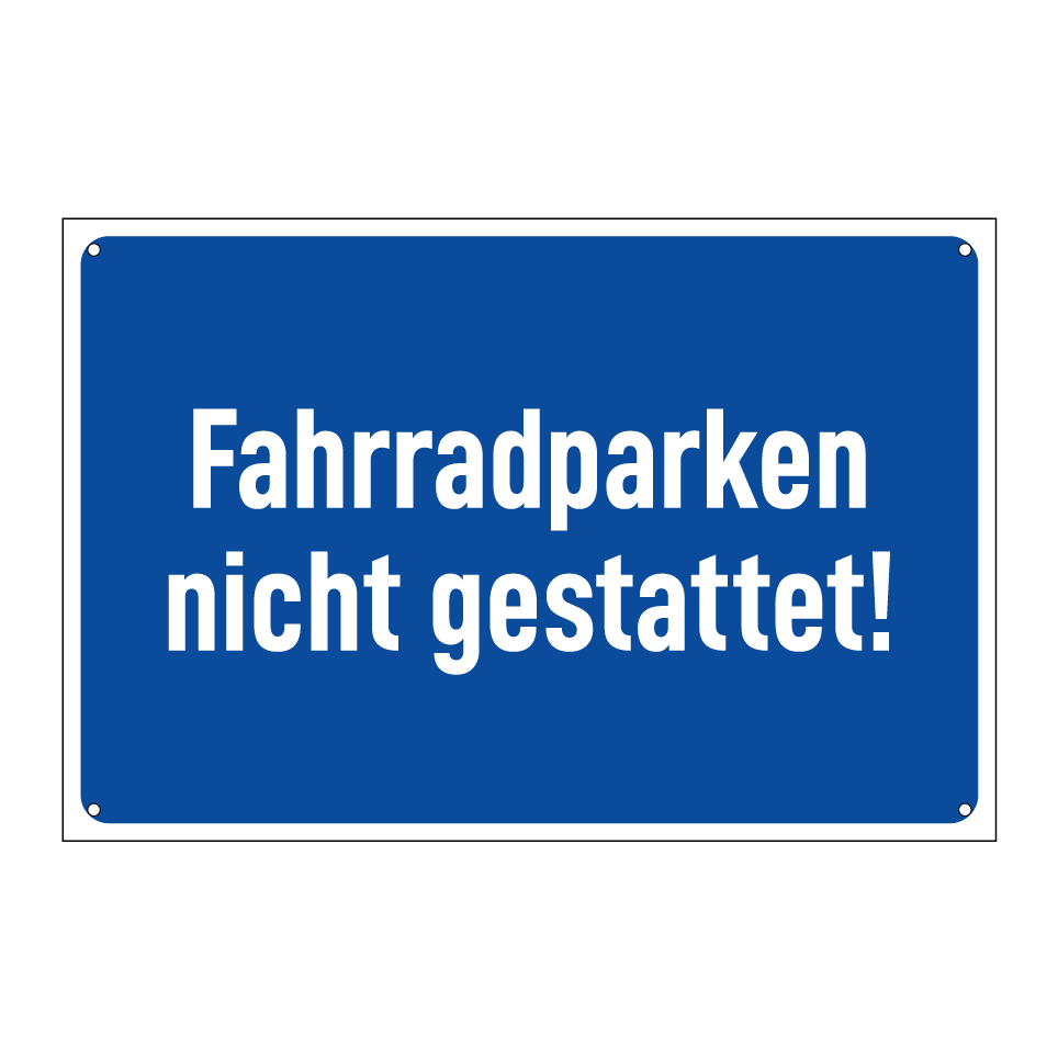 Diese Hinweistafel eignet sich ideal für Bereiche, in denen das Abstellen von Fahrrädern untersagt ist. Sie kann an Eingängen, in Garagen oder auf Parkplätzen angebracht werden, um klarzustellen, dass das Parken von Fahrrädern nicht erlaubt ist. Die deutliche Beschriftung sorgt dafür, dass die Botschaft unmissverständlich ist und hilft, unerwünschtes Abstellen von Fahrrädern zu verhindern. Perfekt für private und öffentliche Bereiche, um Ordnung und Sicherheit zu gewährleisten.