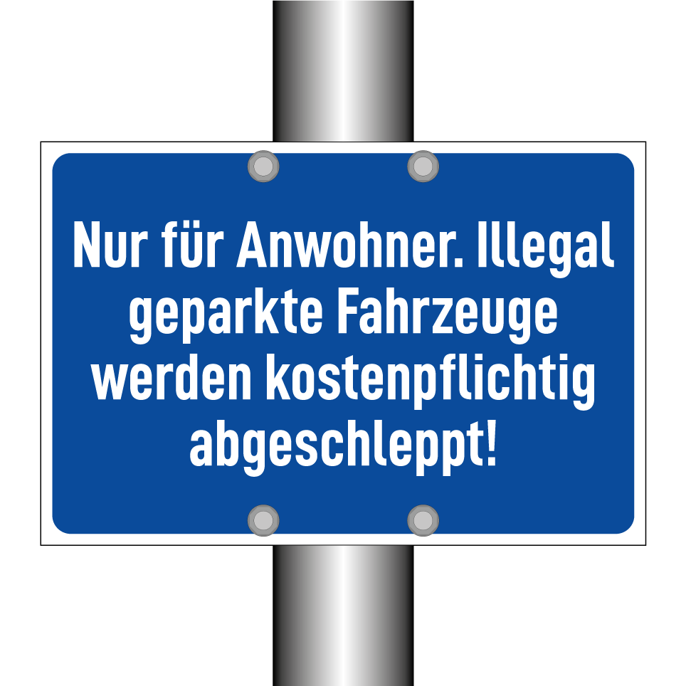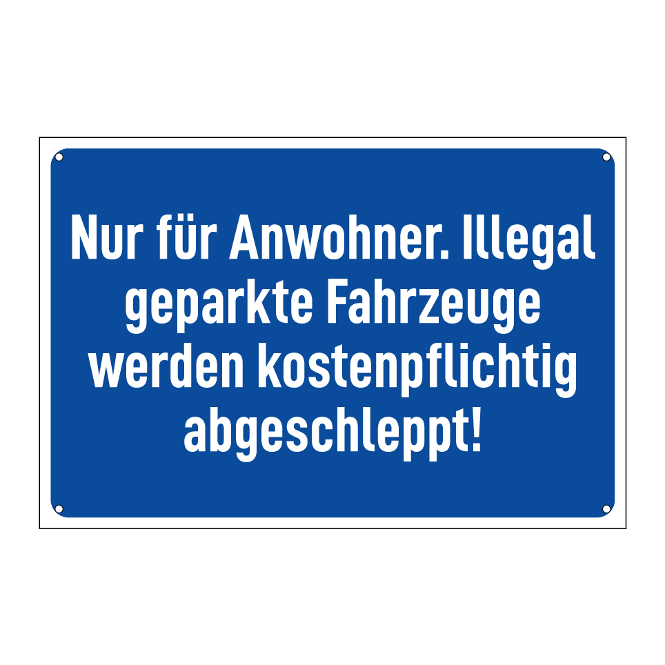 Nur für Anwohner. Illegal geparkte Fahrzeuge werden kostenpflichtig abgeschleppt!