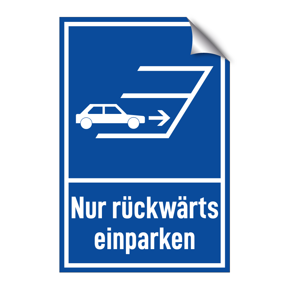 Diese Parkhinweistafel ist ideal für Parkplätze, die rückwärts befahren werden müssen. Sie eignet sich hervorragend für enge Parkhäuser, Tiefgaragen oder private Parkflächen, wo das Rückwärtseinparken erforderlich ist. Die blaue Hintergrundfarbe mit weißer Schrift sorgt für eine klare Sichtbarkeit und Verständlichkeit. Diese Tafel kann an Wänden, Zäunen oder Pfosten angebracht werden, um sicherzustellen, dass die Fahrer die Anweisung leicht erkennen und befolgen können. Perfekt für die Optimierung des Verkehrsflusses und die Maximierung der Parkkapazität.