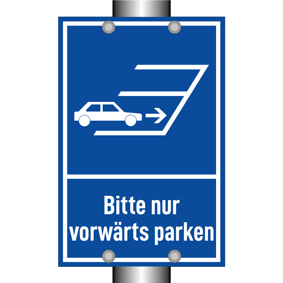 Parkschild mit dem Text Bitte nur vorwärts parken