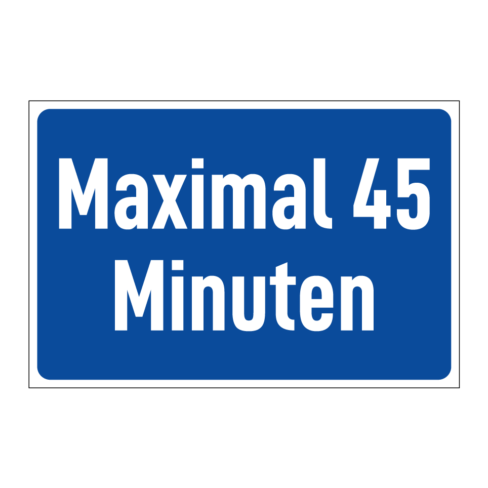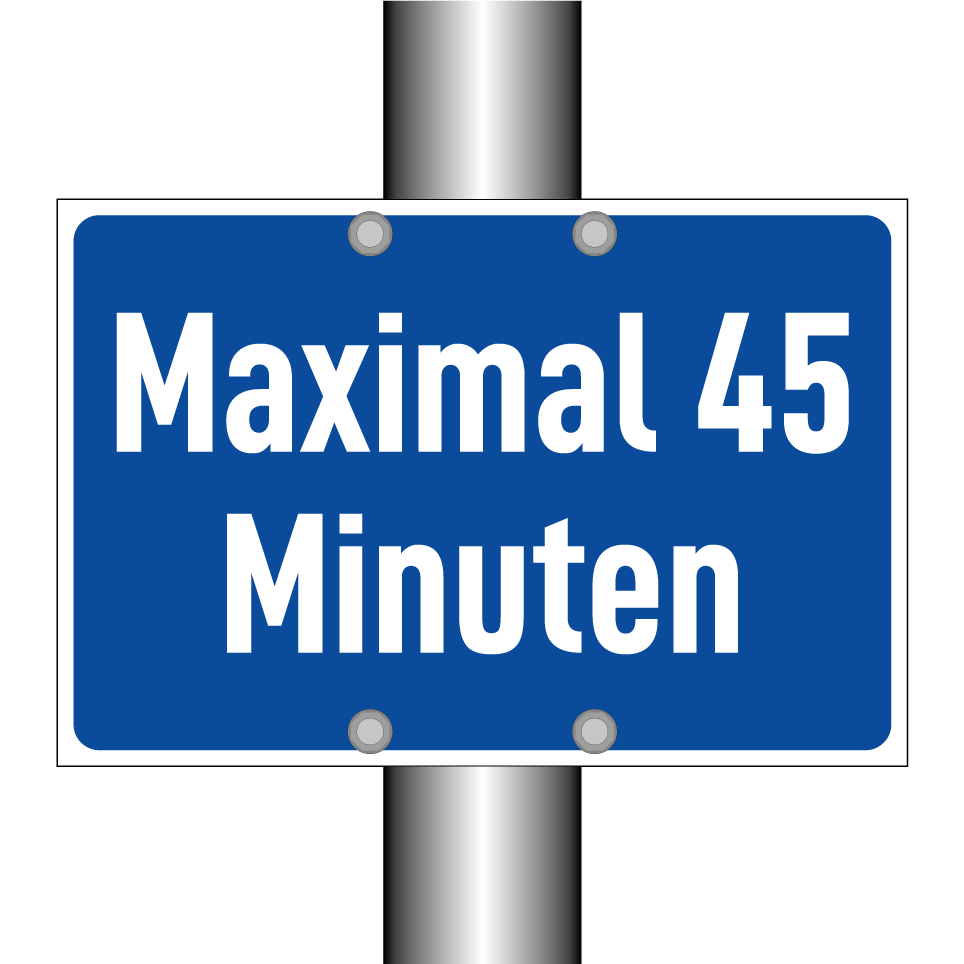 Parkschild mit dem Text Maximal 45 Minuten