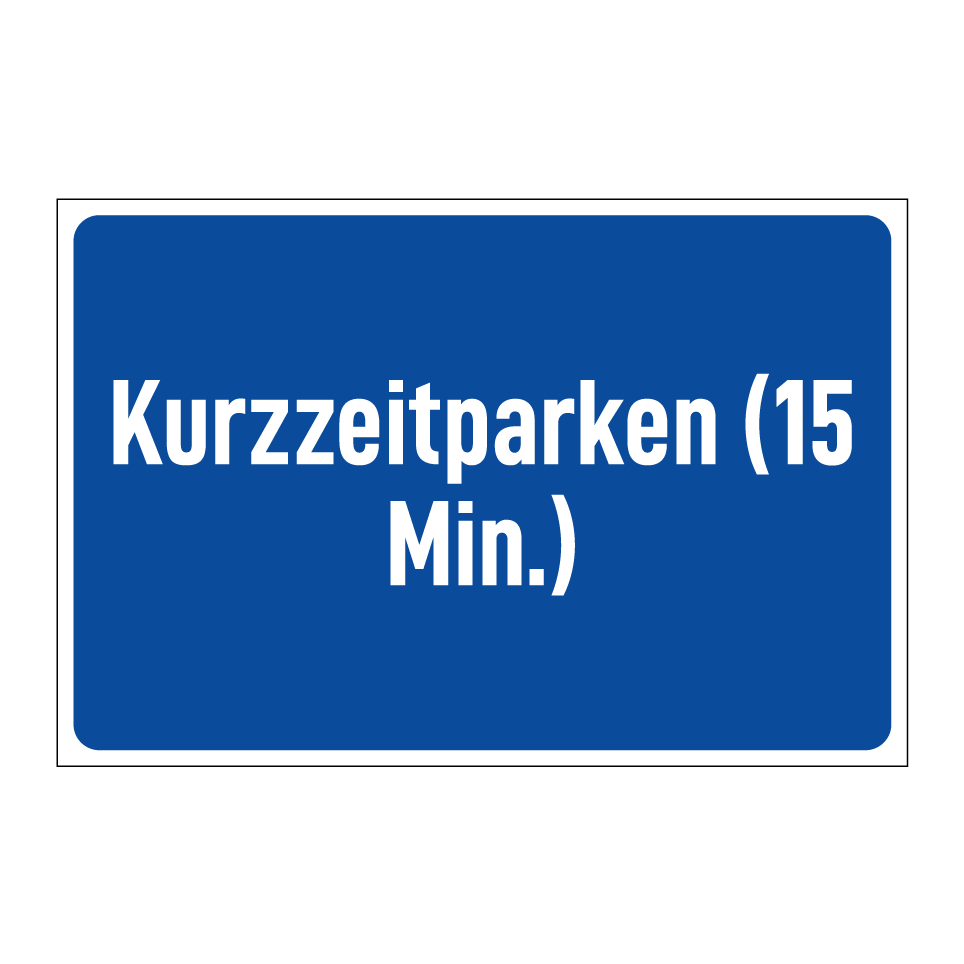 Parkschild mit dem Text Kurzzeitparken (15 Min.)