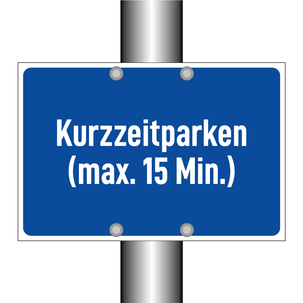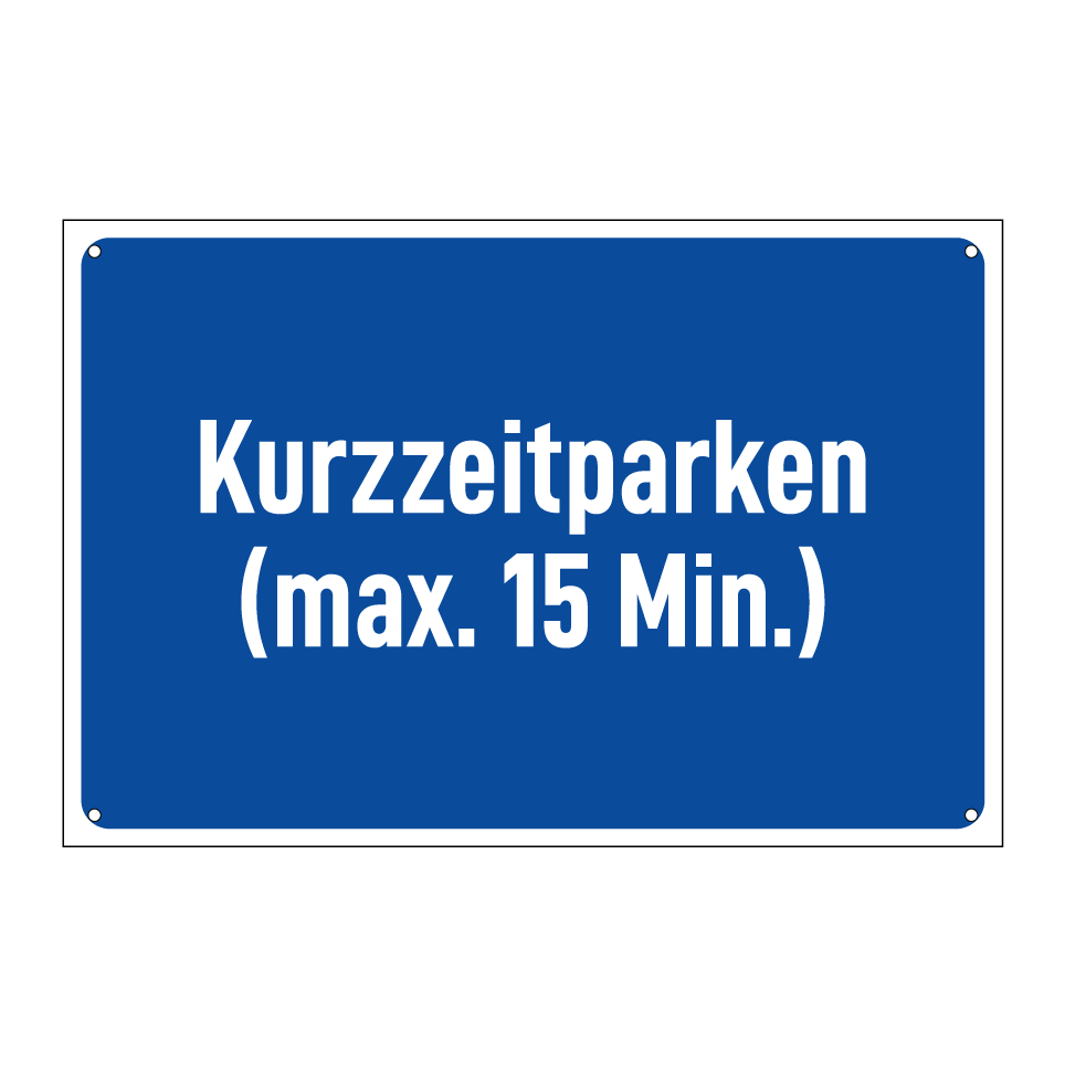 Parkschild mit dem Text Kurzzeitparken (max. 15 Min.)