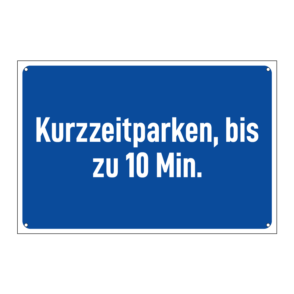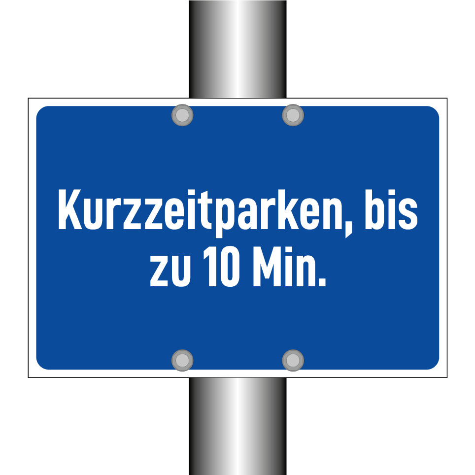 Parkschild mit dem Text Kurzzeitparken, bis zu 10 Min.