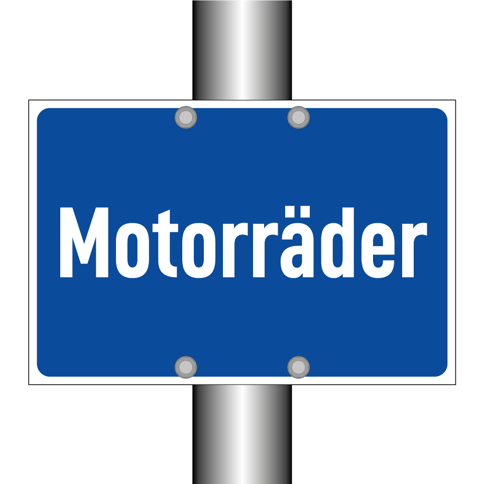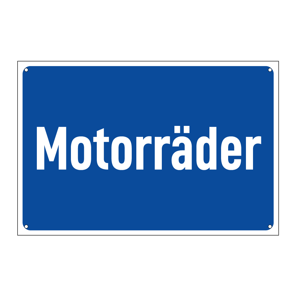 Diese Hinweistafel ist ideal für Parkplätze, die speziell für Motorräder reserviert sind. Sie kann an Einfahrten, in Parkhäusern oder auf öffentlichen Parkplätzen angebracht werden, um Motorradfahrern klare Anweisungen zu geben. Die deutliche blaue Hintergrundfarbe mit weißem Rahmen und Text sorgt für eine gute Sichtbarkeit. Diese Beschilderung hilft, den Verkehr zu organisieren und sicherzustellen, dass Motorradfahrer ihre vorgesehenen Parkplätze leicht finden können. Perfekt für städtische Gebiete, Einkaufszentren oder private Parkflächen.