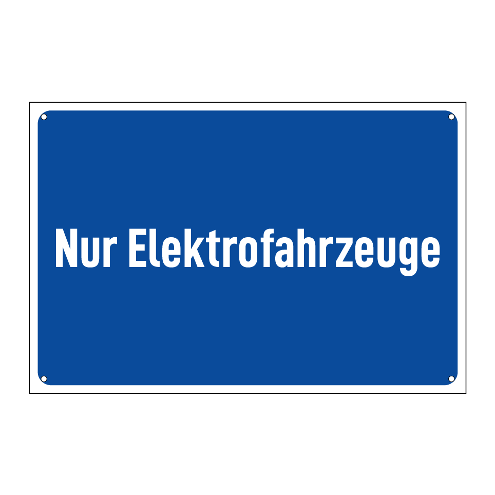 Diese Parkbeschilderung ist ideal für Bereiche, die ausschließlich für Elektrofahrzeuge reserviert sind. Sie eignet sich perfekt für Parkplätze in Einkaufszentren, Bürogebäuden oder Wohnanlagen, um sicherzustellen, dass nur emissionsfreie Fahrzeuge parken. Die deutliche blaue Hintergrundfarbe mit weißem Rahmen und Text sorgt für klare Sichtbarkeit. Platzieren Sie sie an Einfahrten oder direkt auf Parkplätzen, um die Nutzung von Elektrofahrzeugen zu fördern und die Umwelt zu schonen.