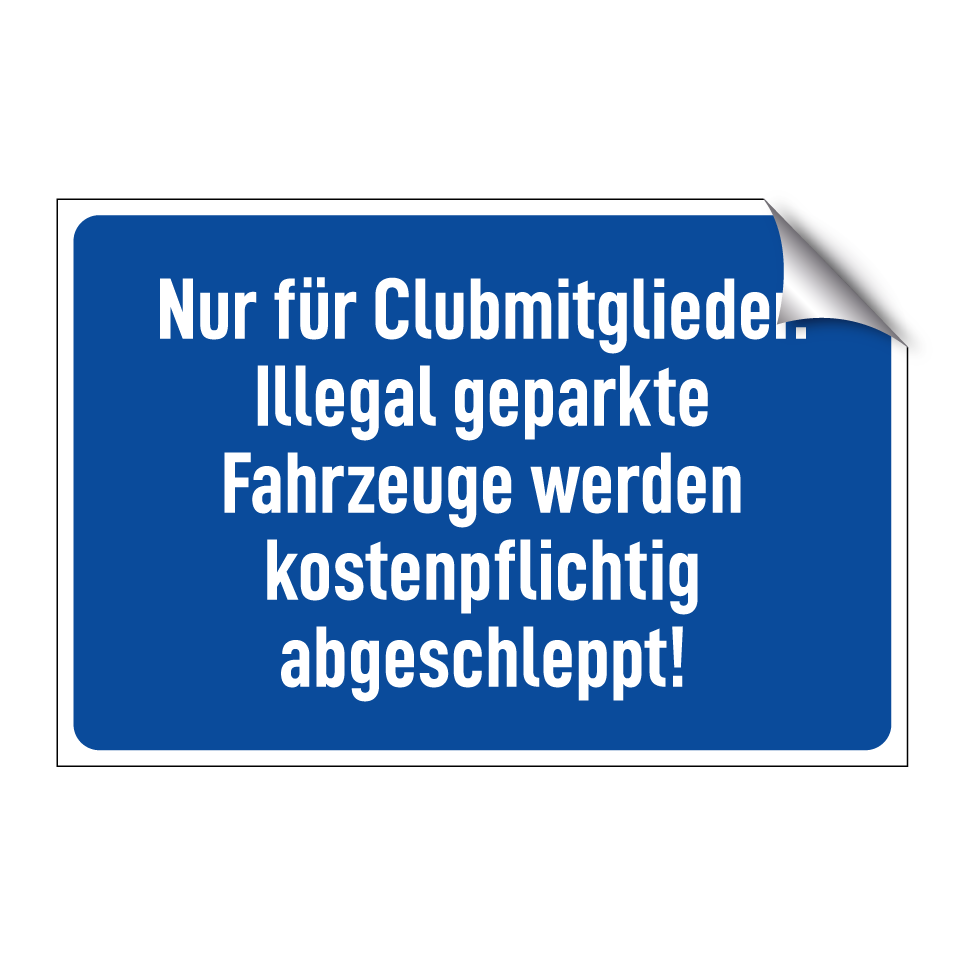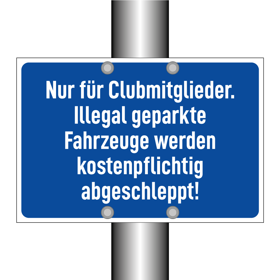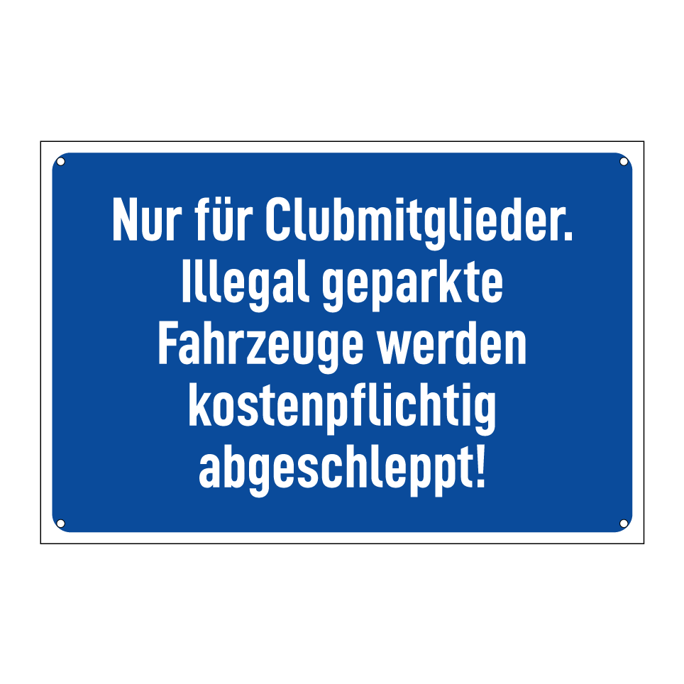 Parkschild mit dem Text Nur für Clubmitglieder. Illegal geparkte Fahrzeuge werden kostenpflichtig abgeschleppt!