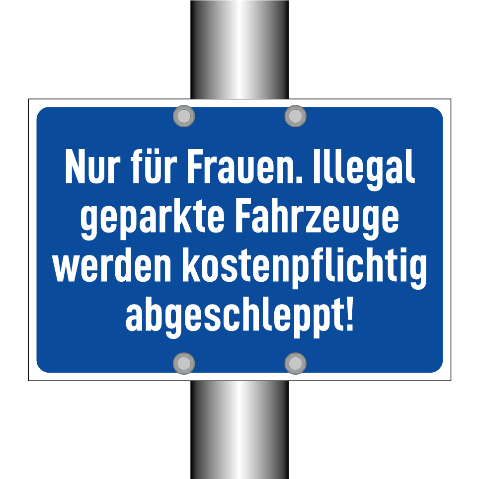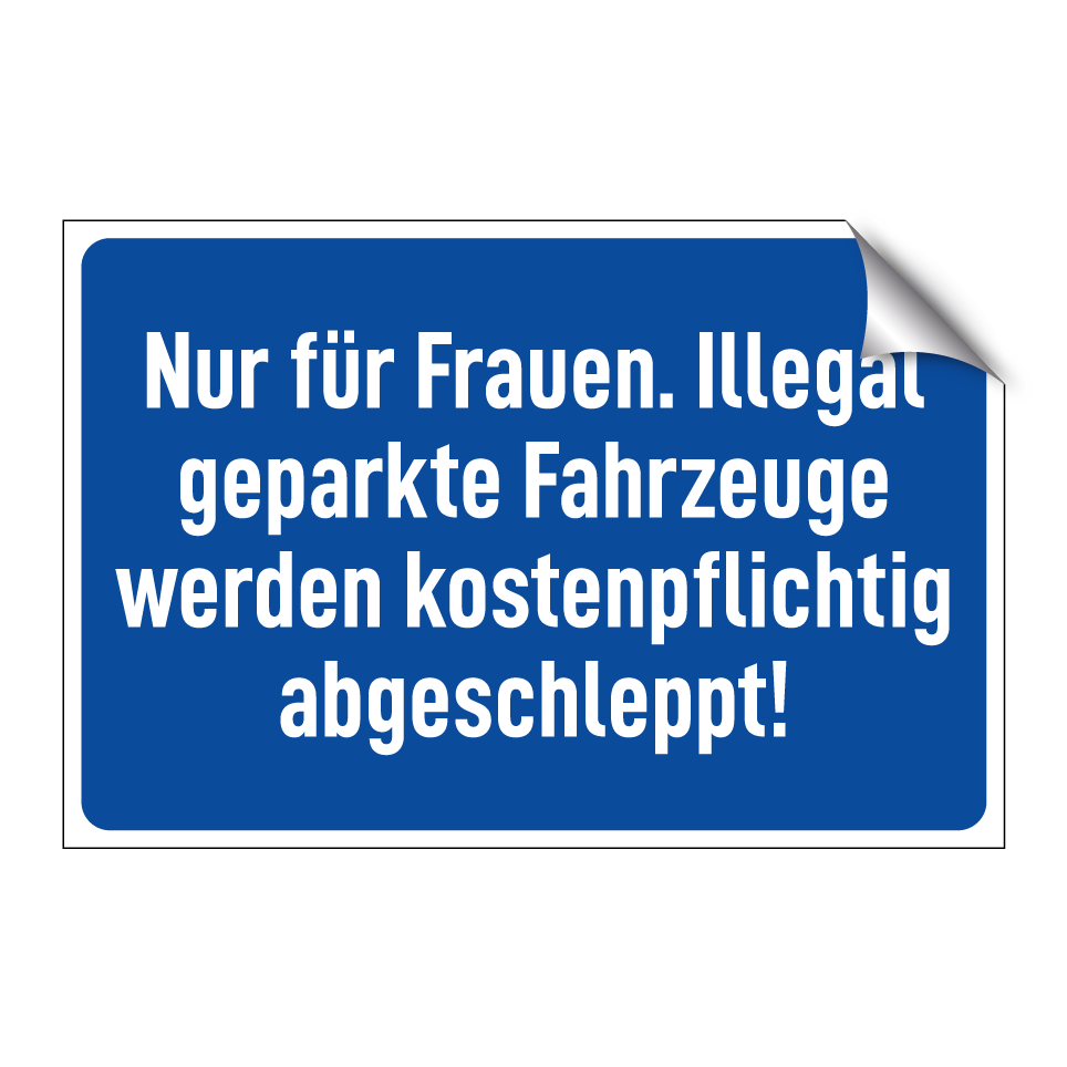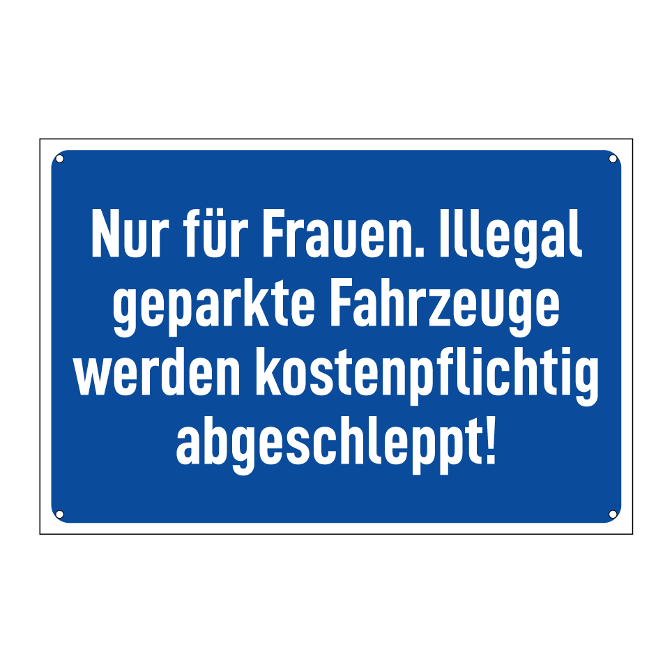 Parkschild mit dem Text Nur für Frauen. Illegal geparkte Fahrzeuge werden kostenpflichtig abgeschleppt!