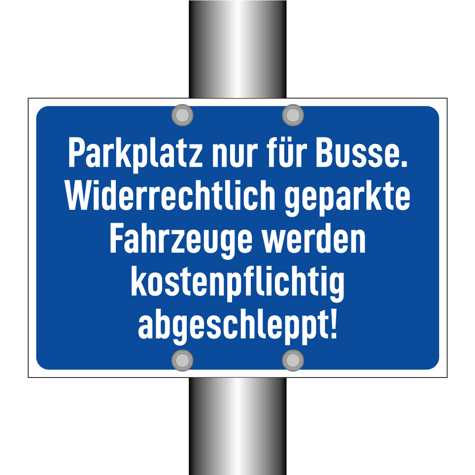 Parkschild mit dem Text Parkplatz nur für Busse. Widerrechtlich geparkte Fahrzeuge werden kostenpflichtig abgeschleppt!