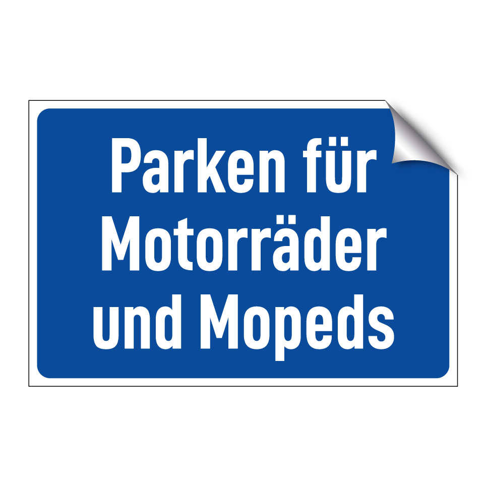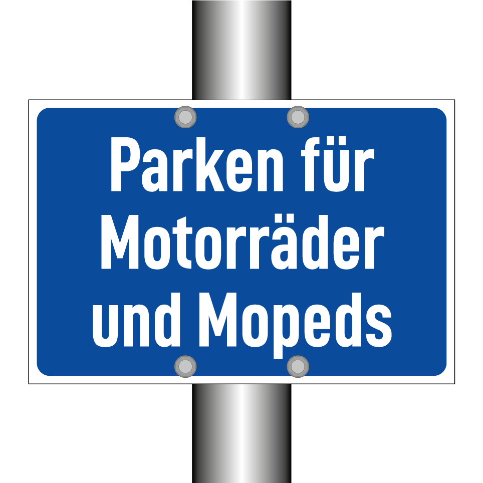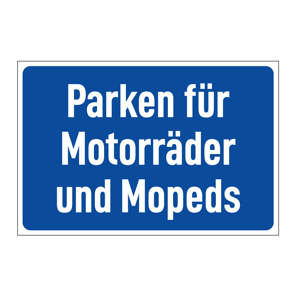 Parkschild mit dem Text Parken für Motorräder und Mopeds