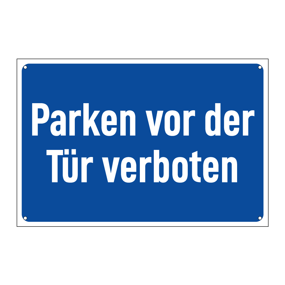 Diese Verbotstafel eignet sich ideal für den Einsatz in Bereichen, in denen das Parken untersagt ist, wie z.B. vor Einfahrten, Garagen oder Notausgängen. Sie dient dazu, den Verkehr zu regulieren und sicherzustellen, dass wichtige Zugänge frei bleiben. Die auffällige blaue Hintergrundfarbe mit weißem Rahmen und Text sorgt dafür, dass das Verbot deutlich sichtbar ist. Platzieren Sie das Schild an gut einsehbaren Stellen, um die Einhaltung der Parkregeln zu gewährleisten.
