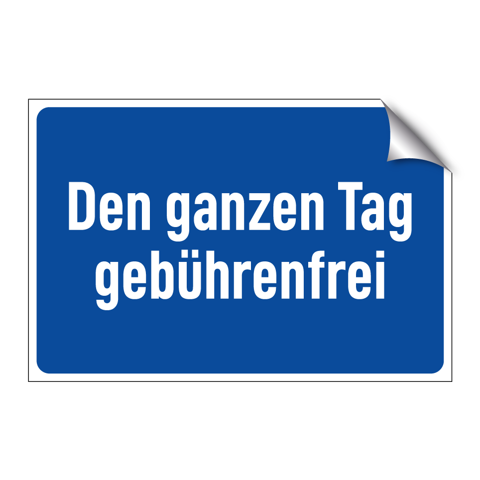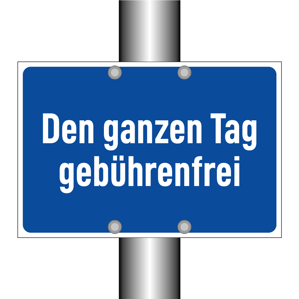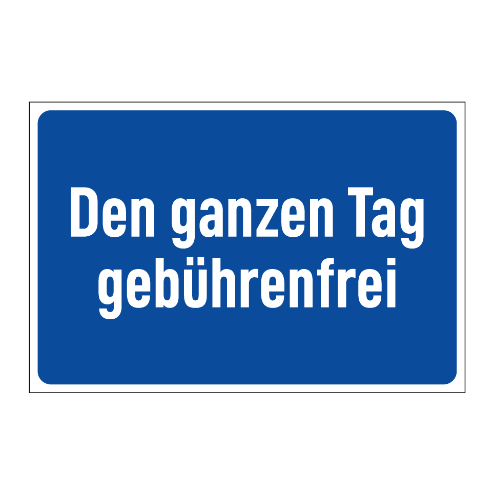 Parkschild mit dem Text Den ganzen Tag gebührenfrei