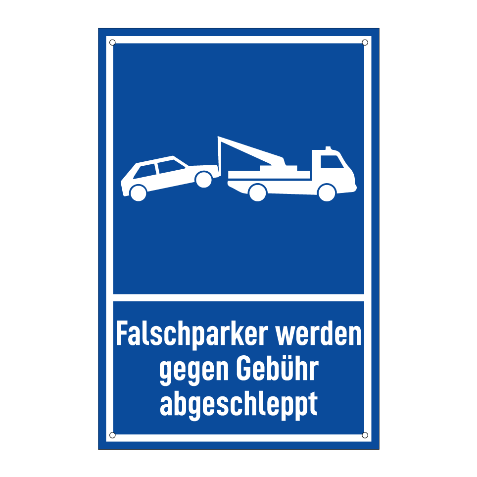 Parkschild mit dem Text Falschparker werden gegen Gebühr abgeschleppt